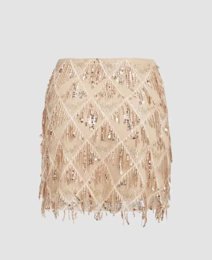 Lady Women's Casual Midi Skirt with Sequined Corset and Tassel Decoration for Parties