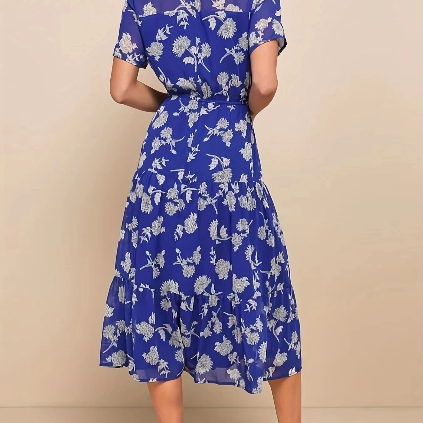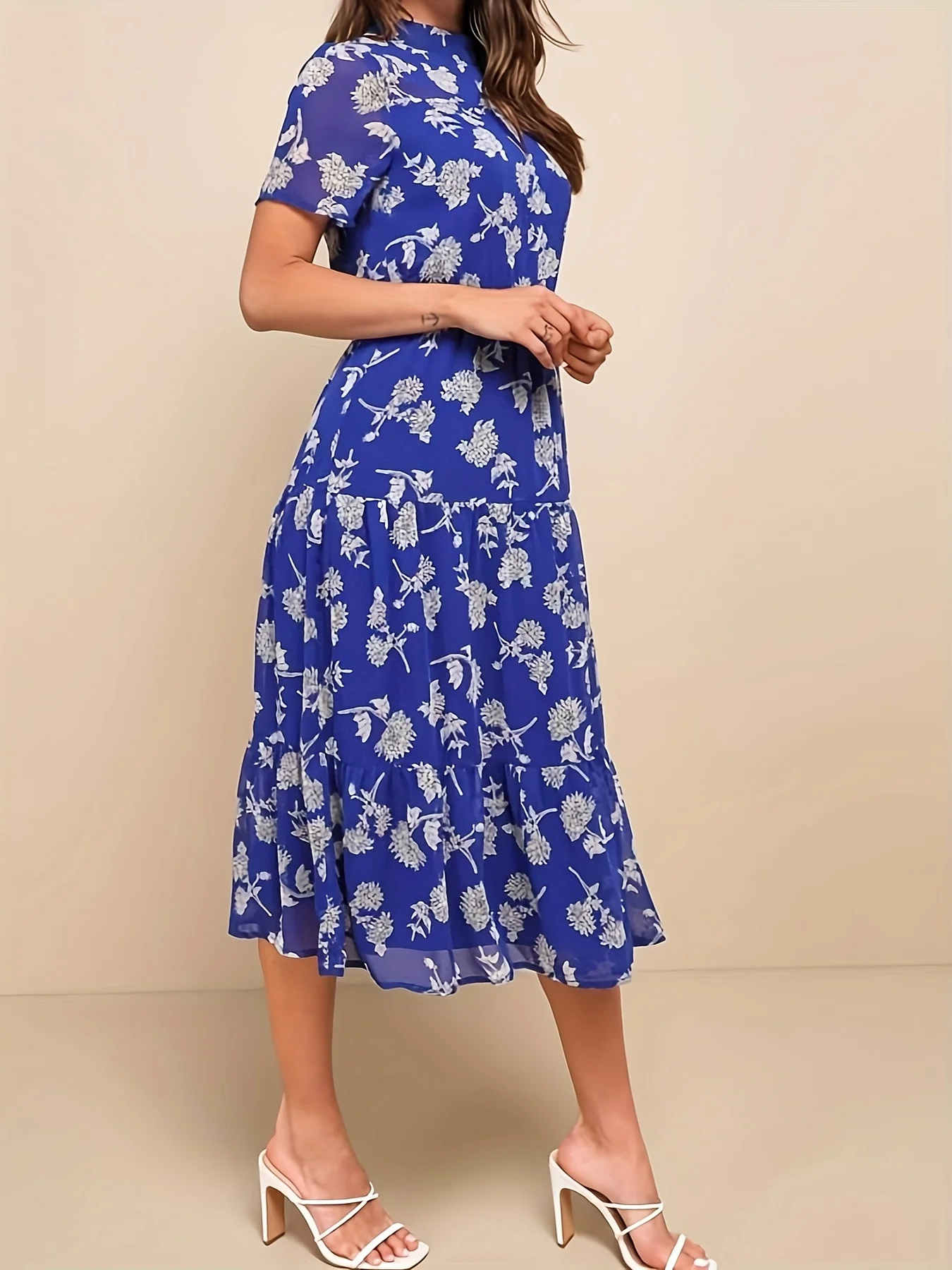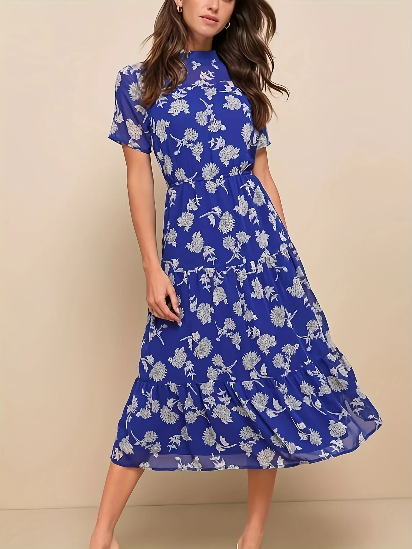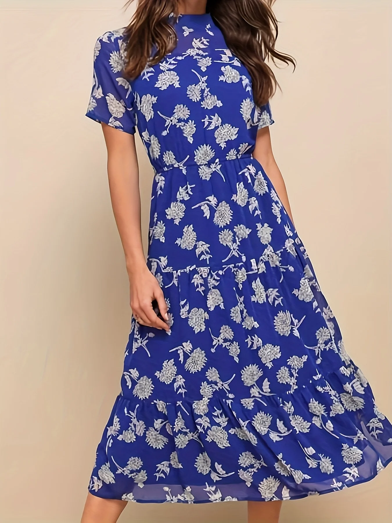 Elegant Floral Print High Neck A-Line Dress for All Seasons