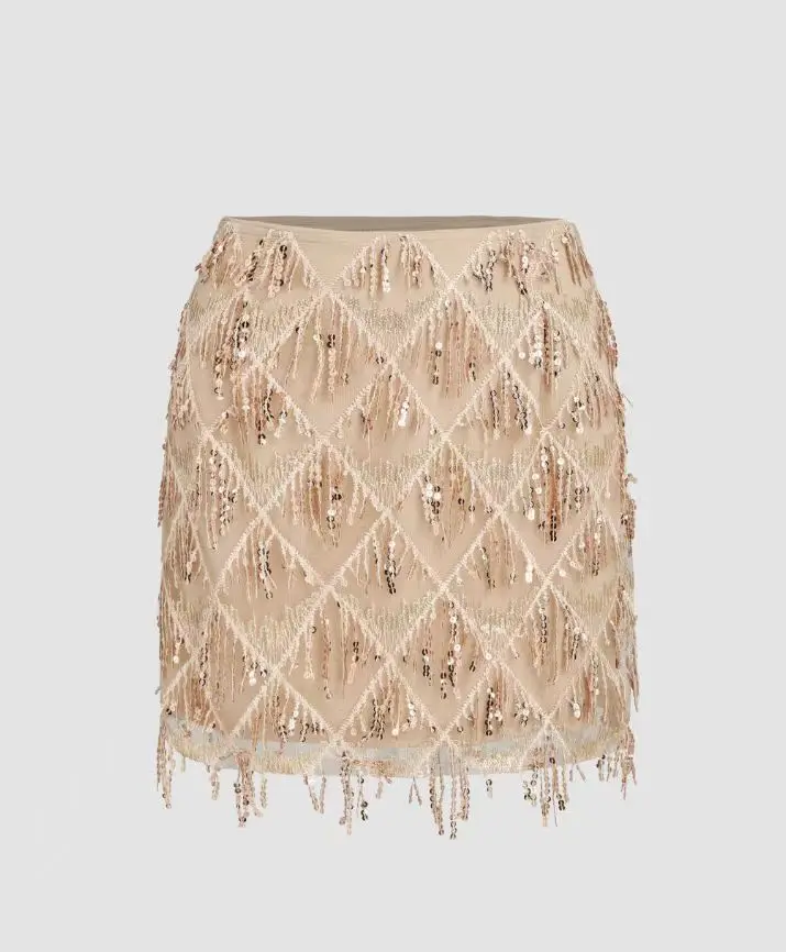 Lady Women's Sequined Corset Midi Skirt Casual Nylon Style with Tassel Decoration for Parties