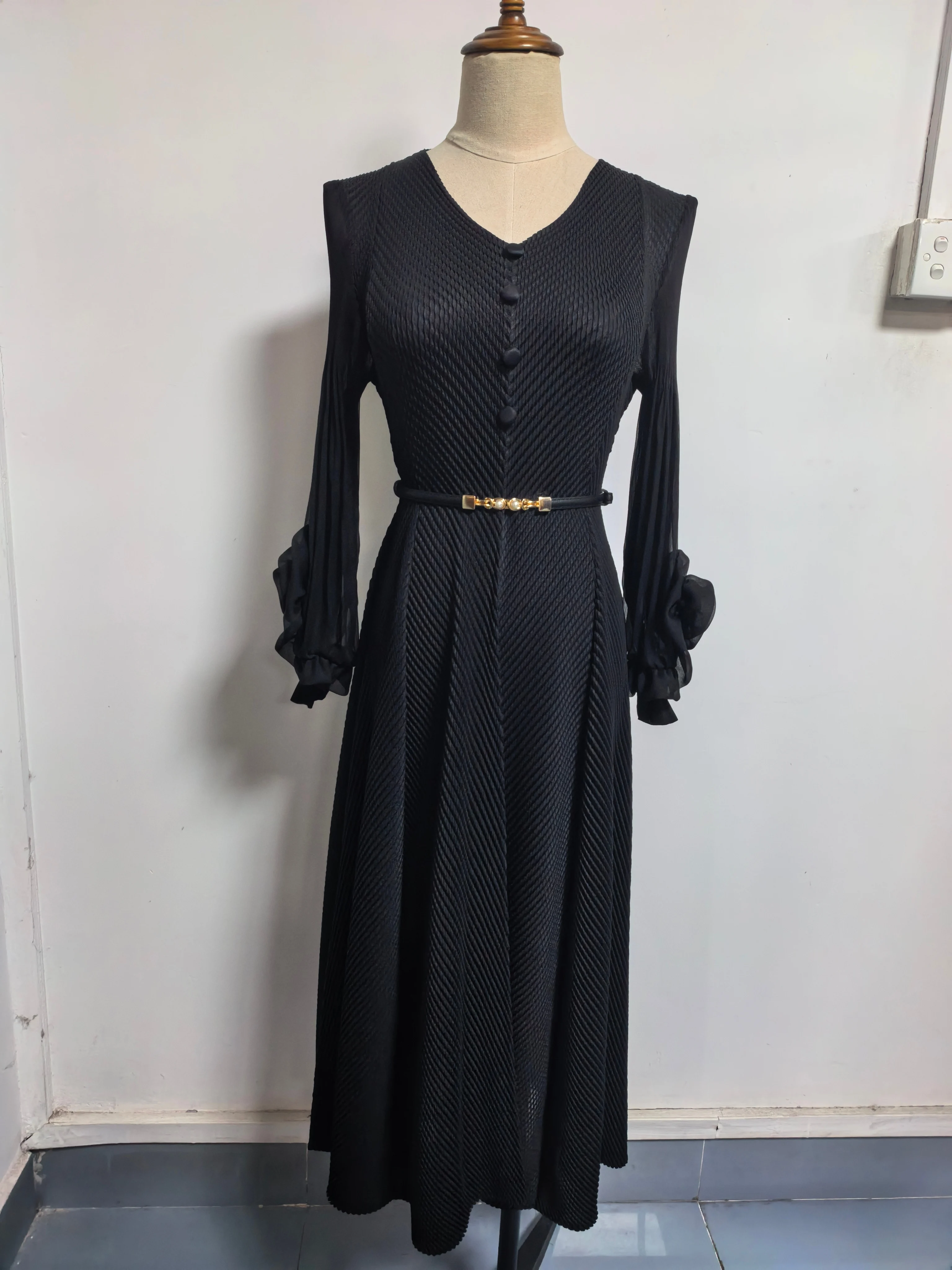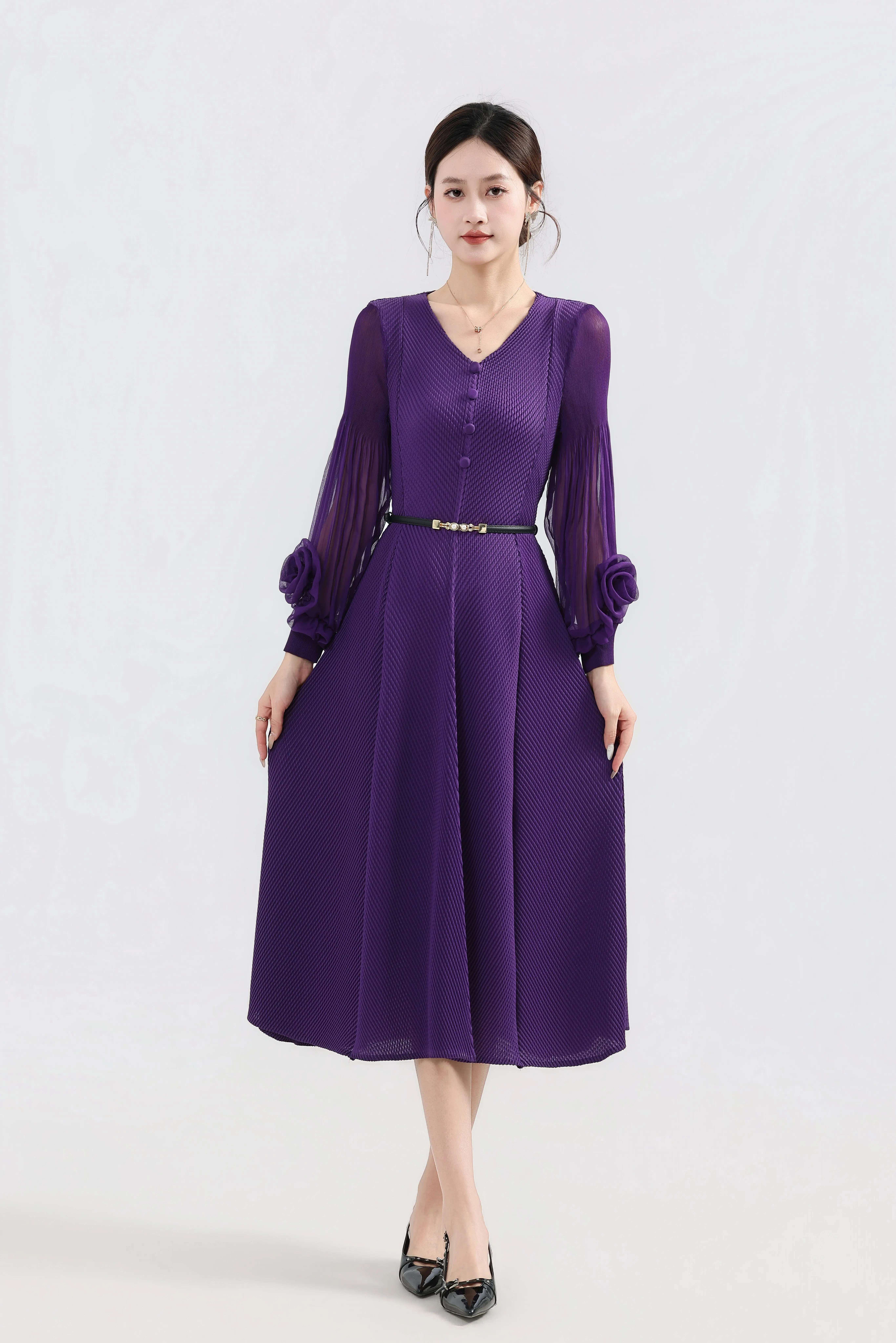 Plus Size Women's Floor-length Pleated Dress Net Fabric Sleeves Fish-scale Pleats Polyester Casual Style Wholesale Available.