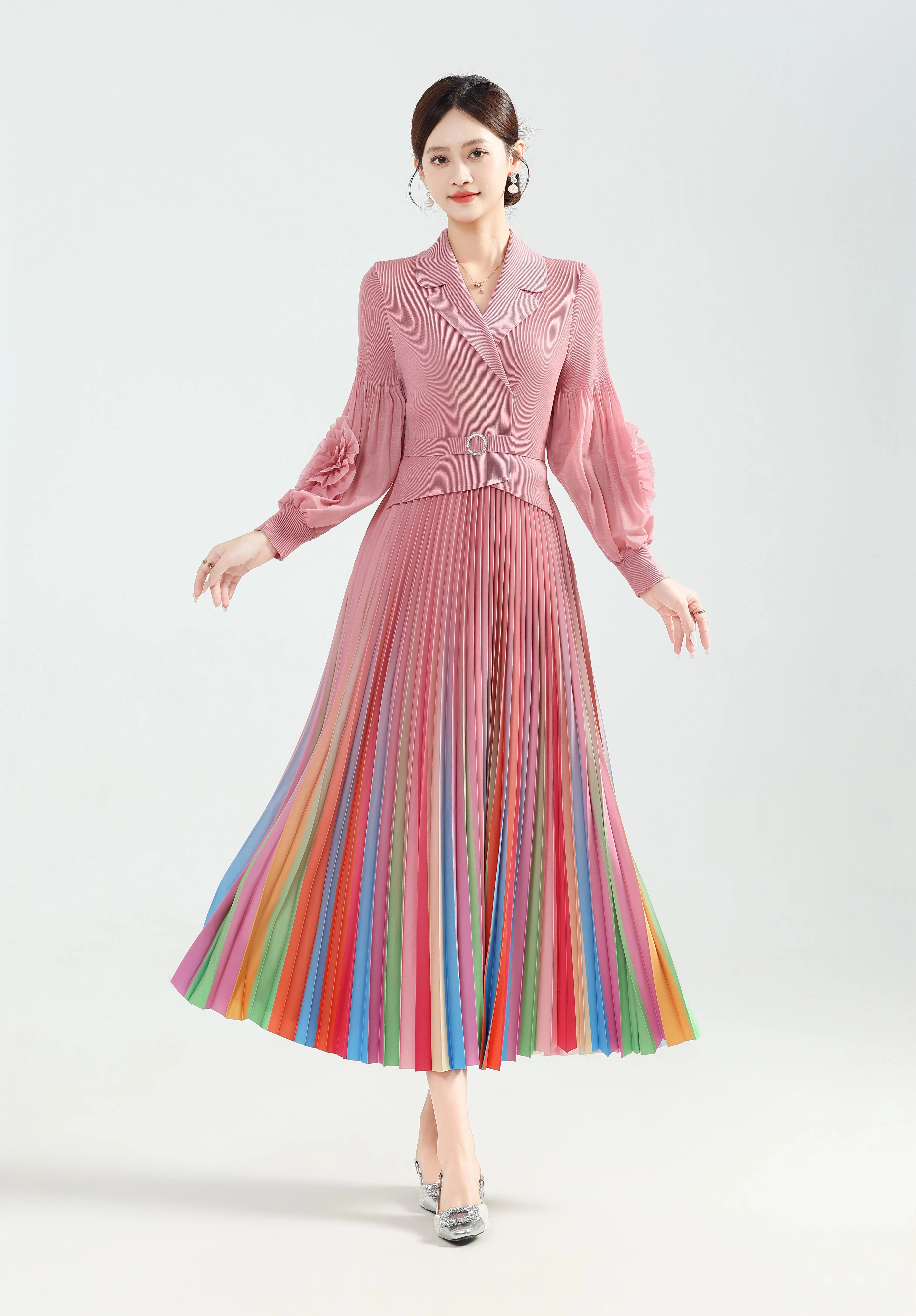 ZYHT 73849 European Wholesale Fashion Casual One Shoulder Ruched Maxi Dress Side Slit Pleated Long Sleeve Dresses for Women