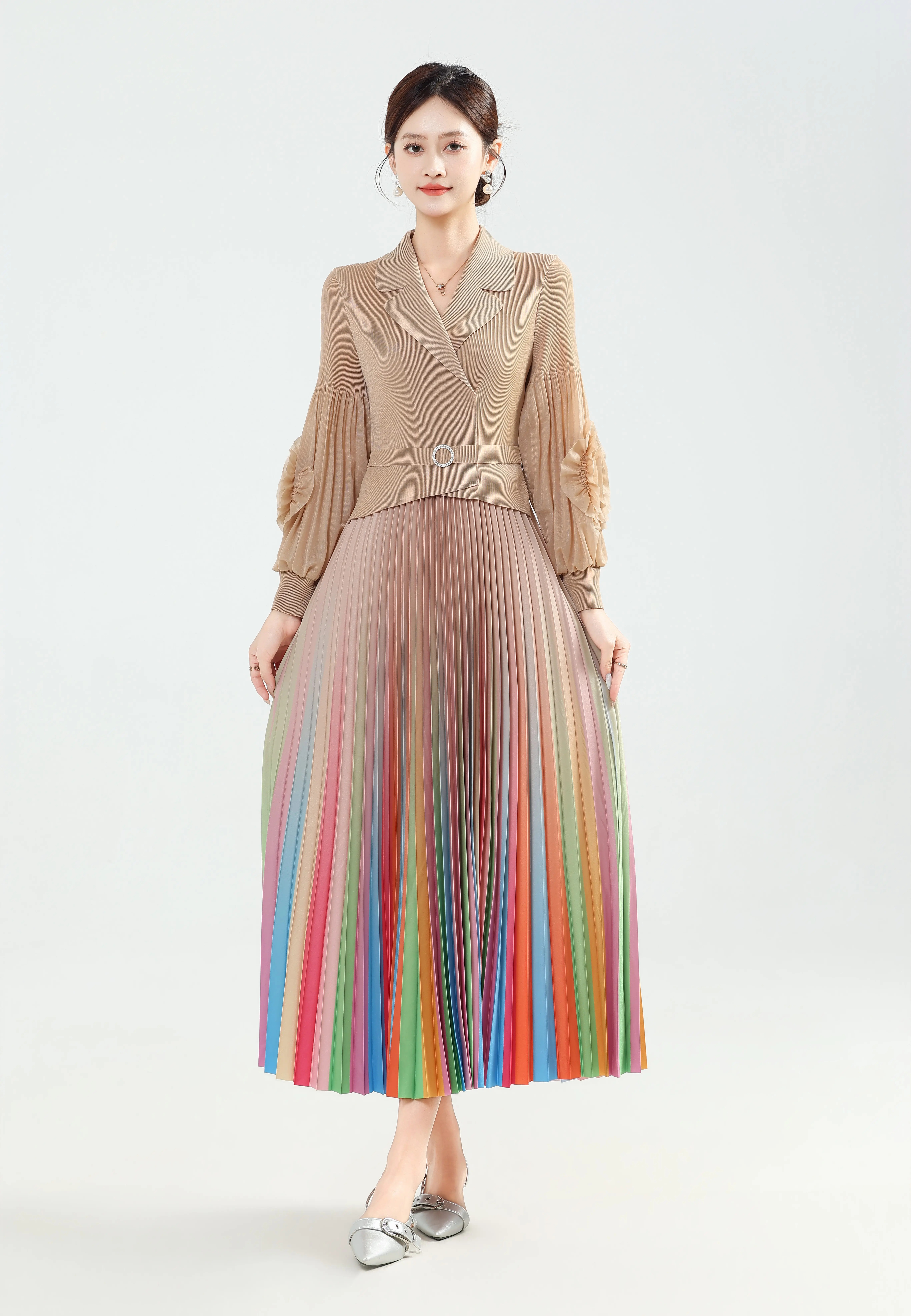 Plus Size Women's Pleated Dress - Loose Fit Flowy Midi Length Casual Daily Wear