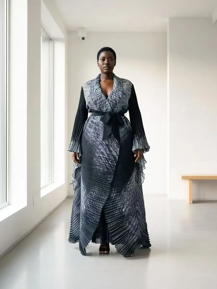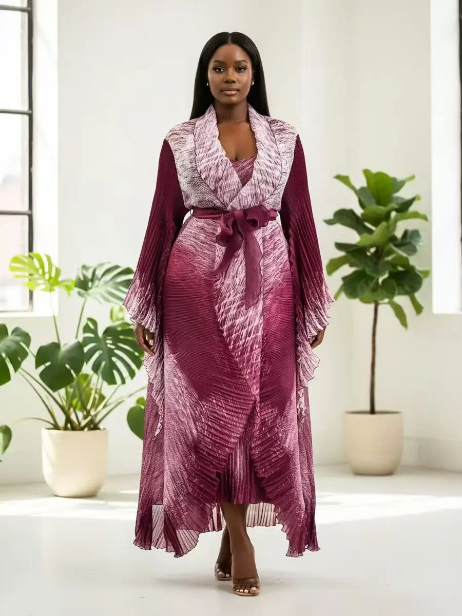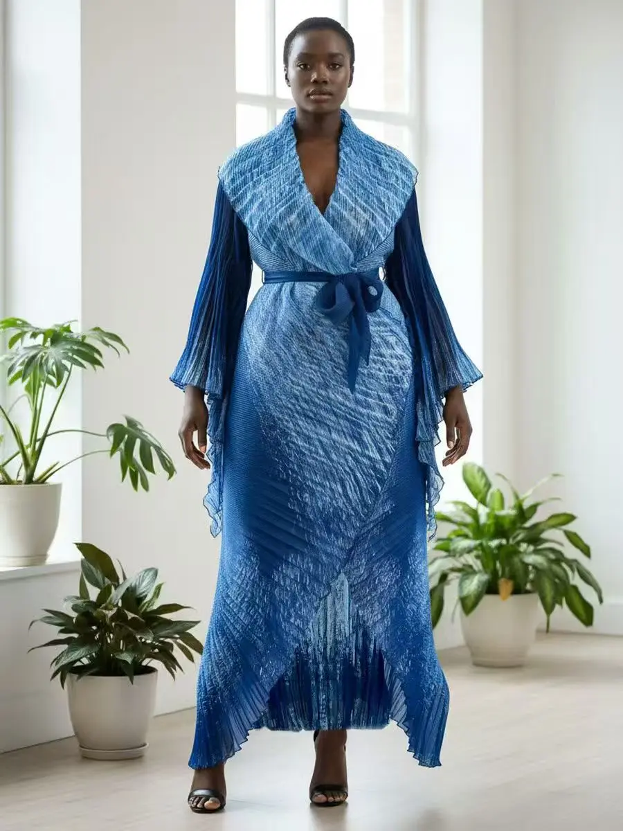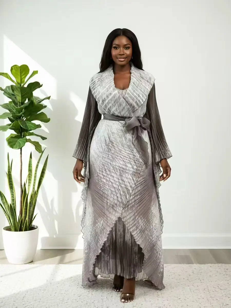 European and American High-end Pleated Women's Long Dress for Casual Wear in Large Size