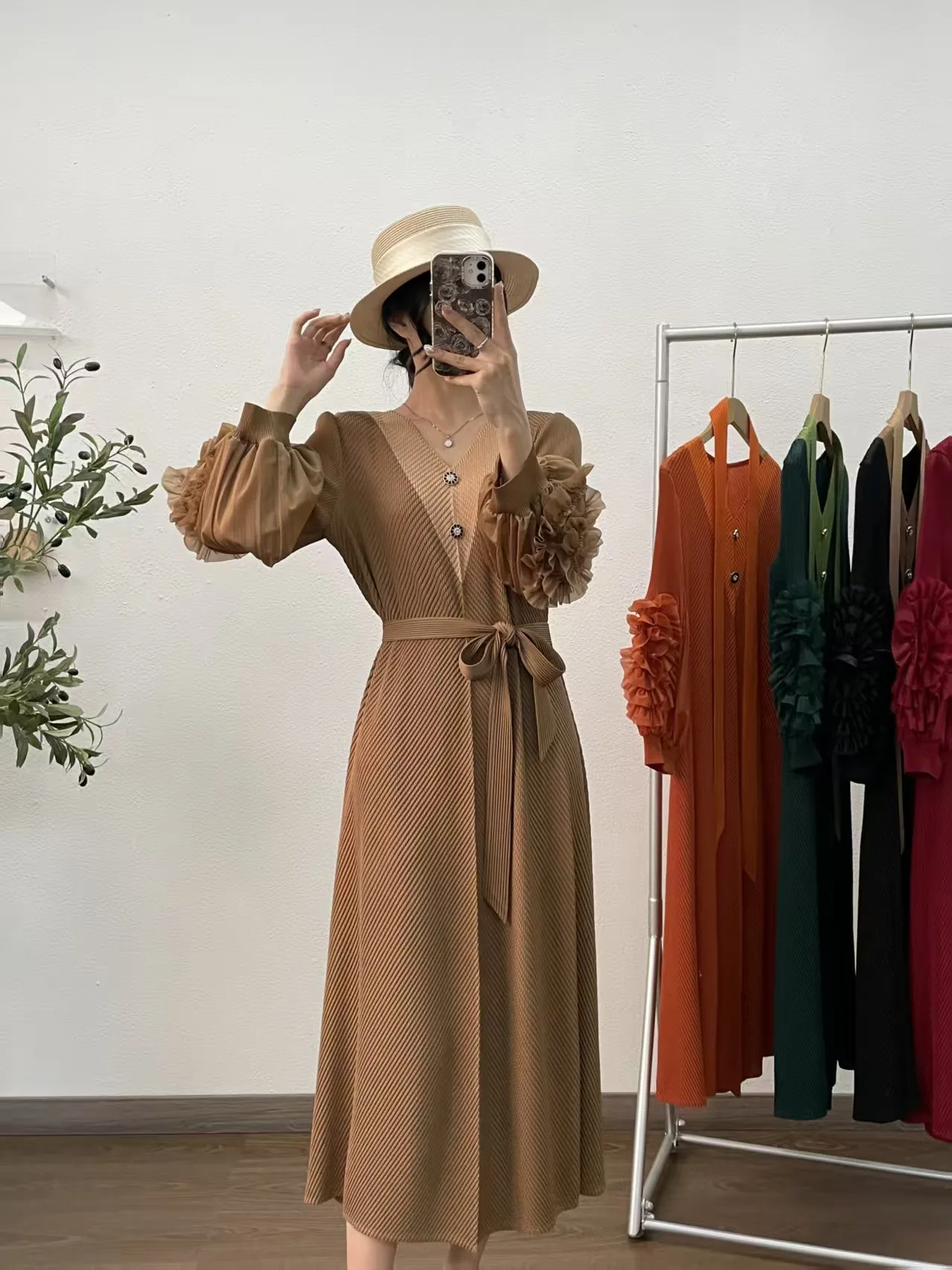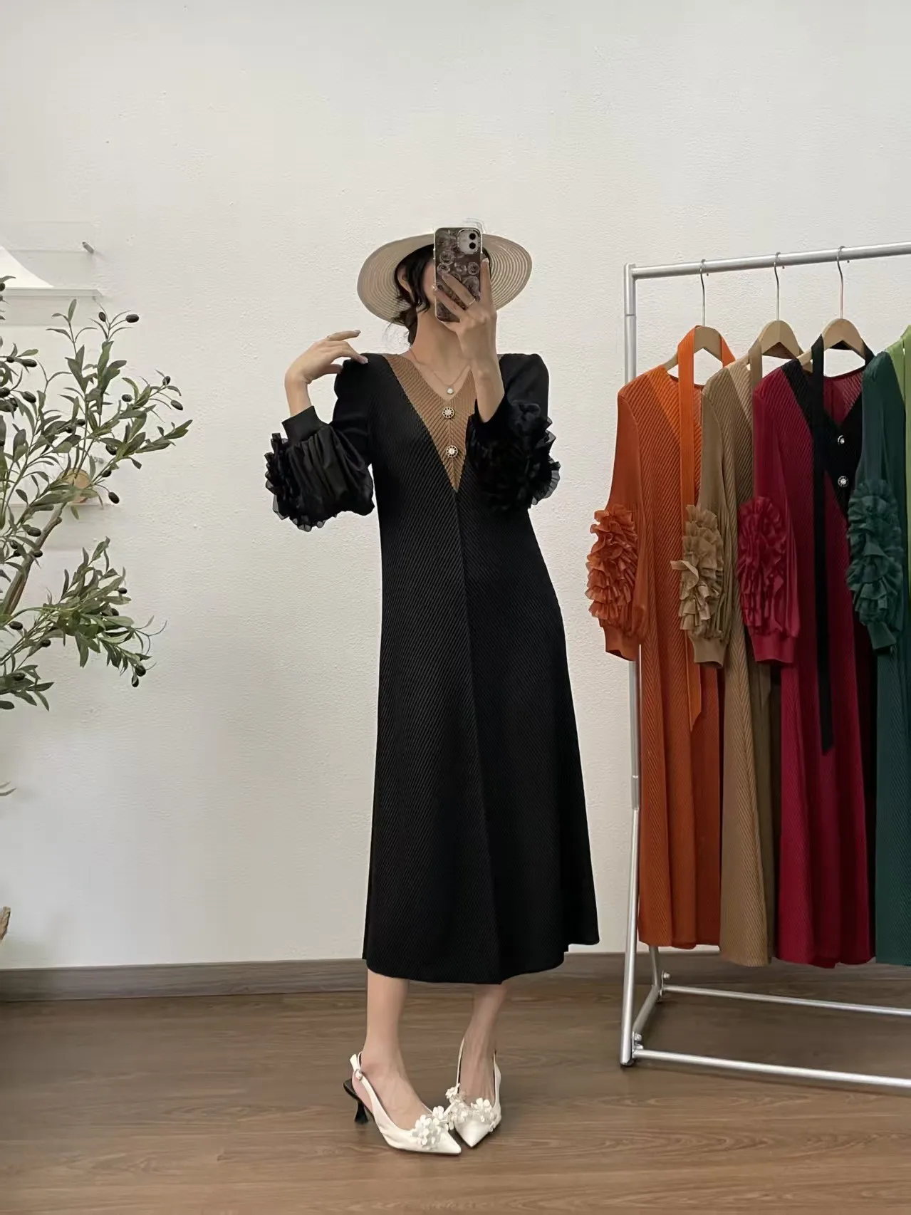 High-end Miyake Pleated Dresses for Plus-size Women Come in Various Sizes and Are Designed to Fit Snugly