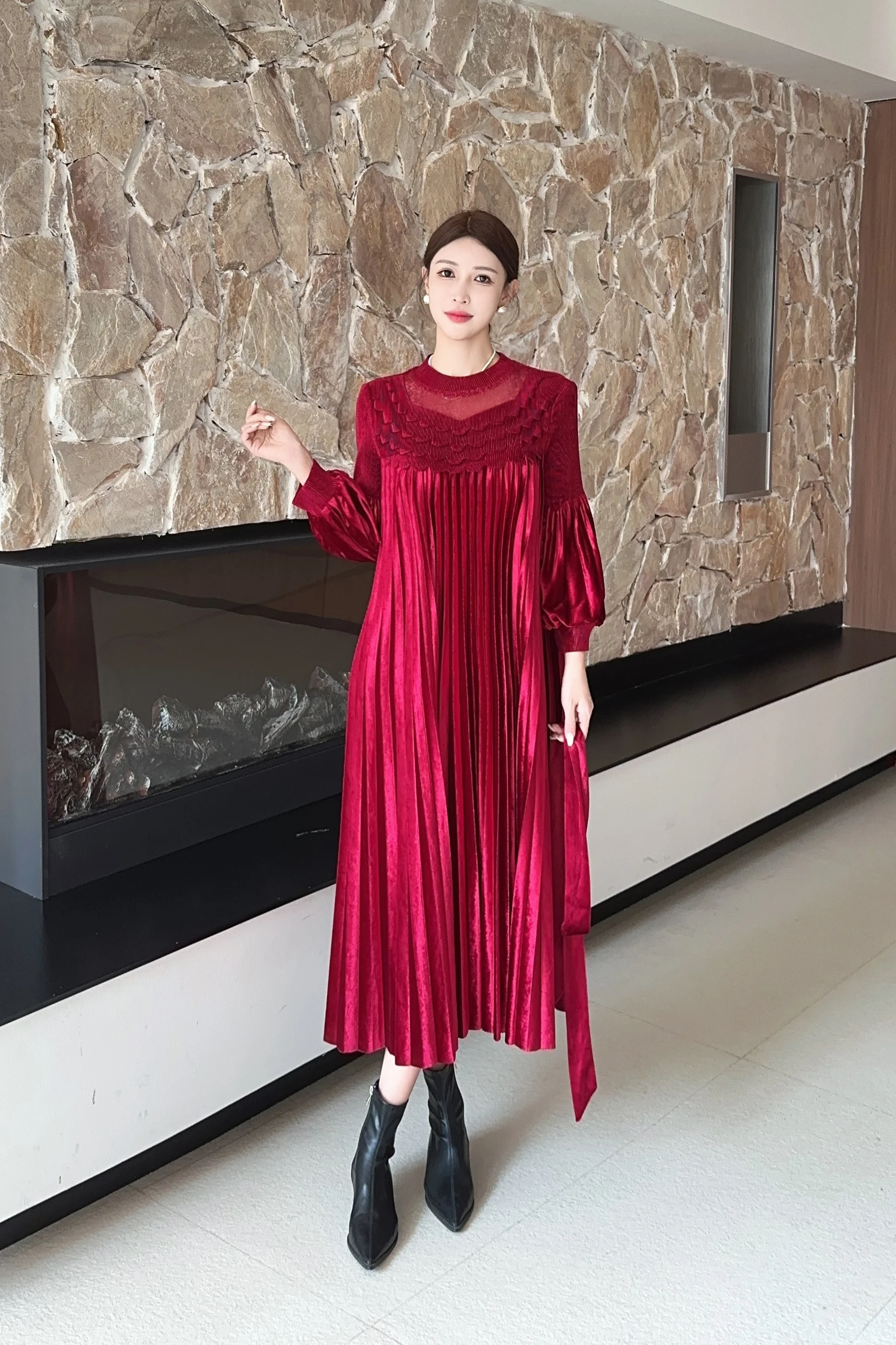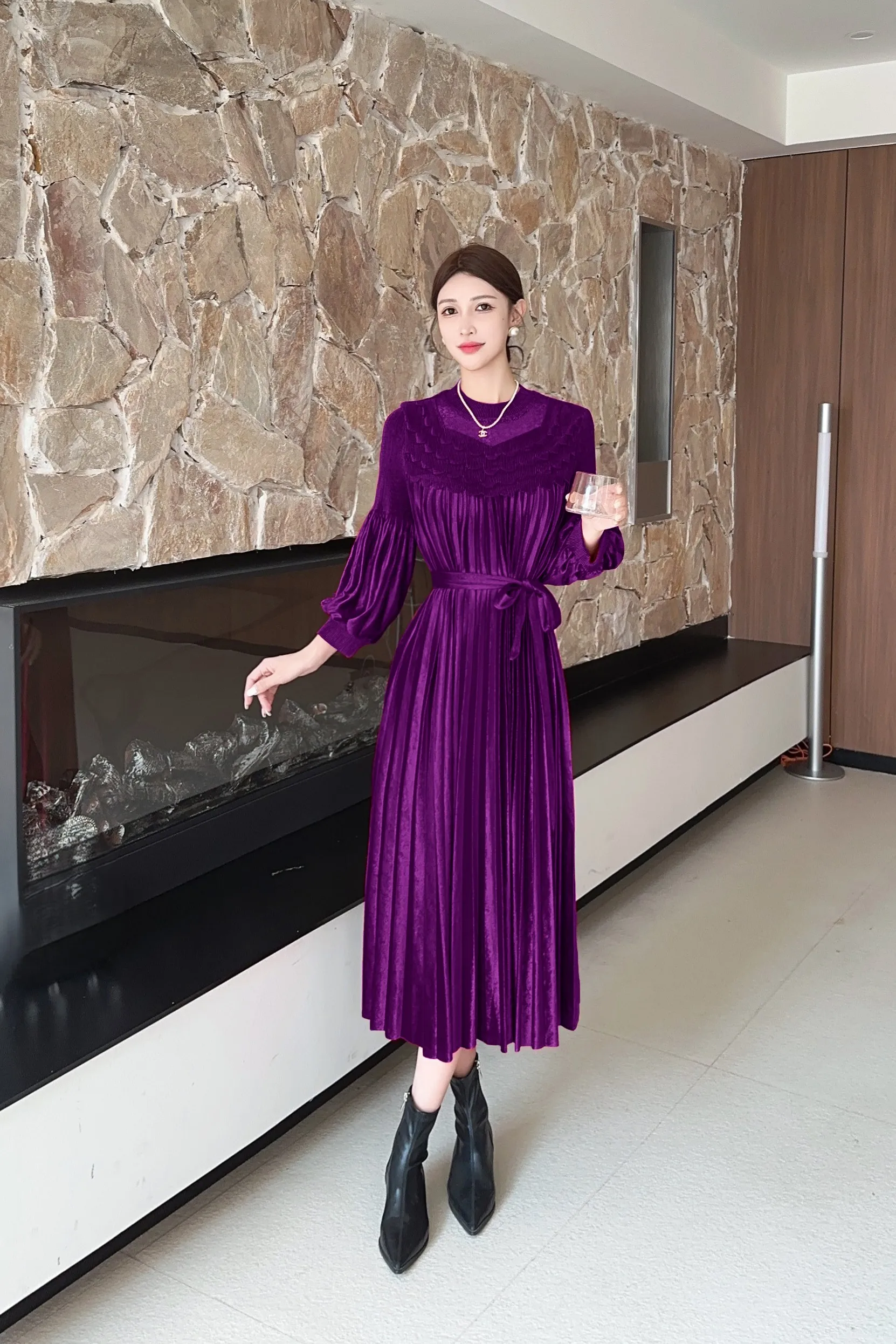 Miyake Pleated Dress Manufacturer - Wholesale Comfortable and Elegant Plus-size Velvet Dresses