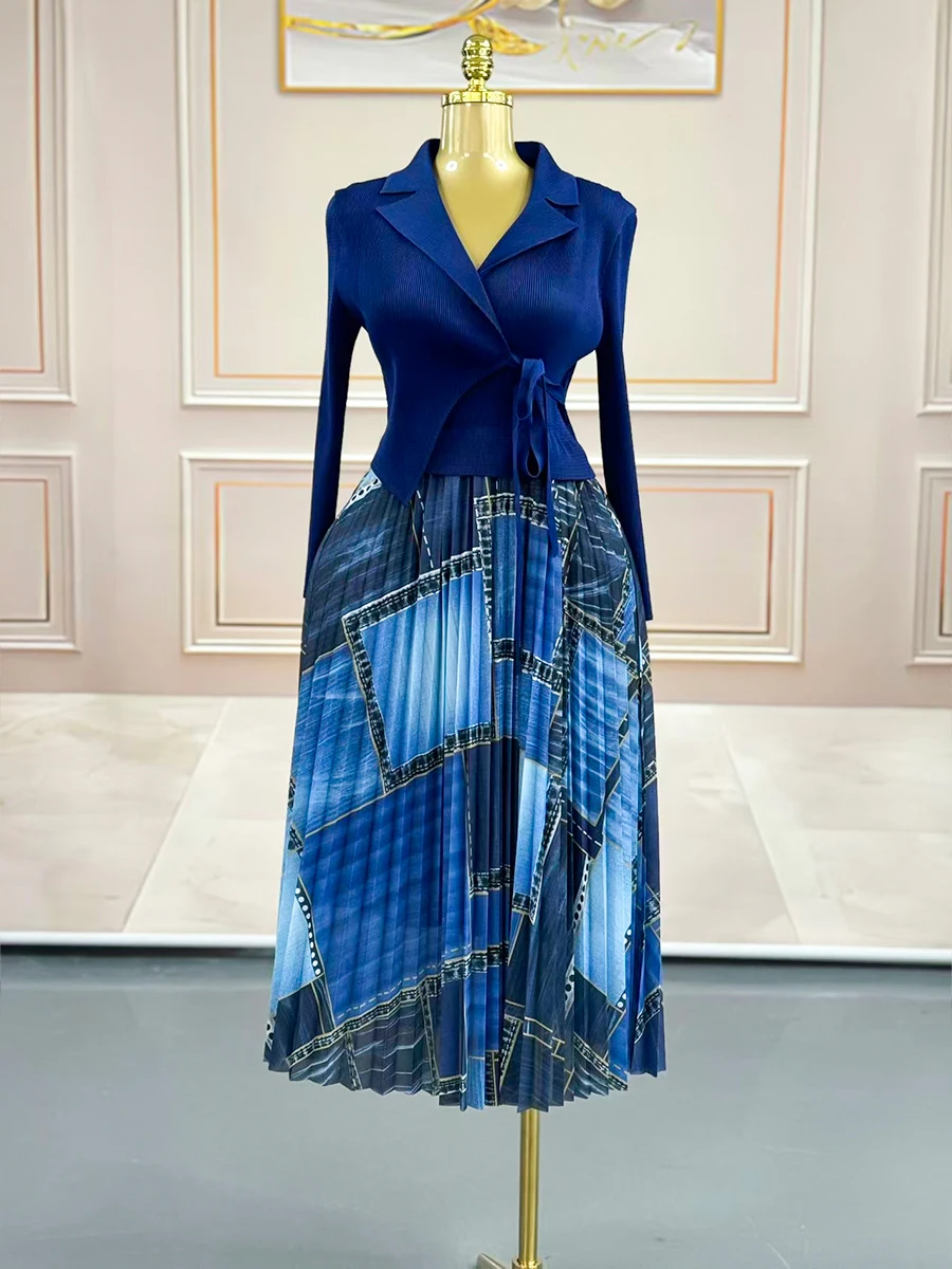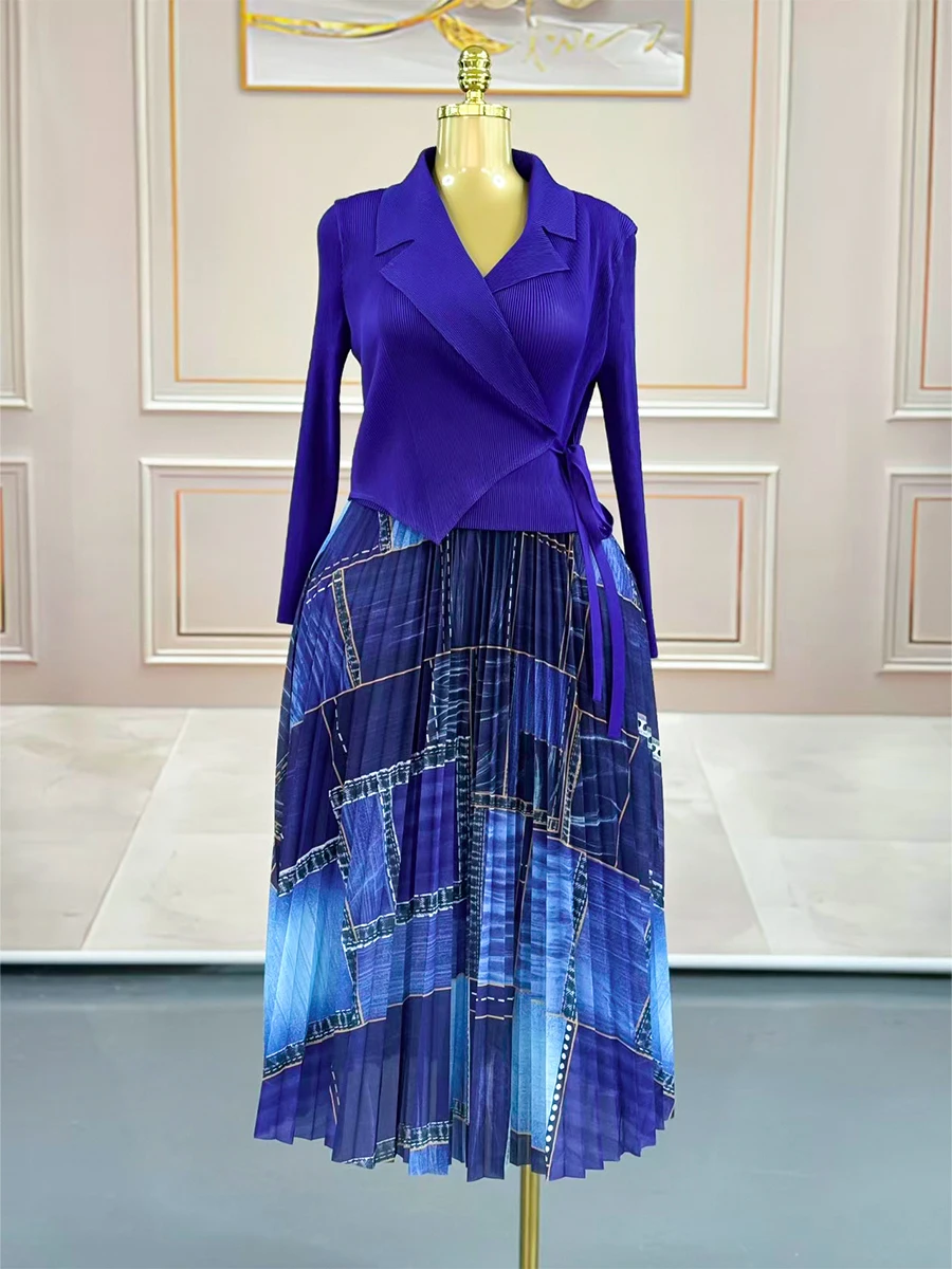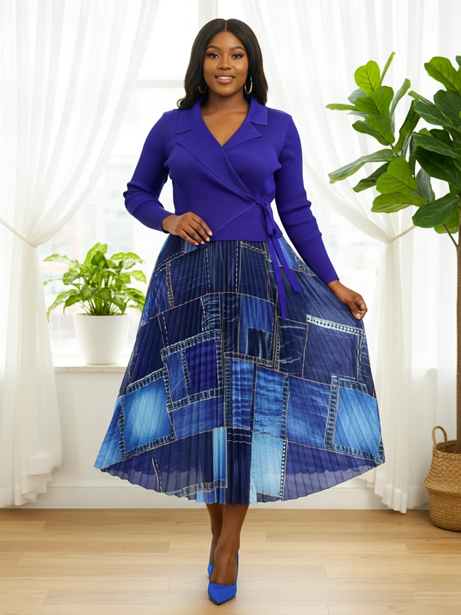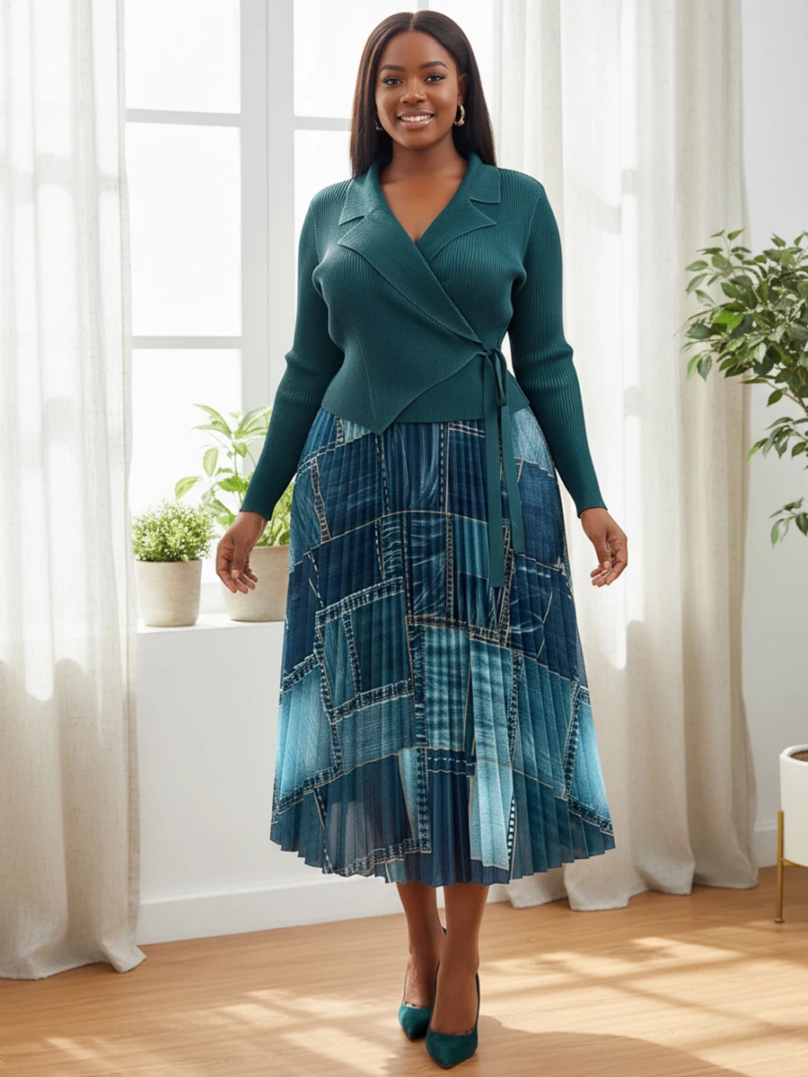 New European-style Pleated Dress with Fashionable Prints for Ladies in Large Size