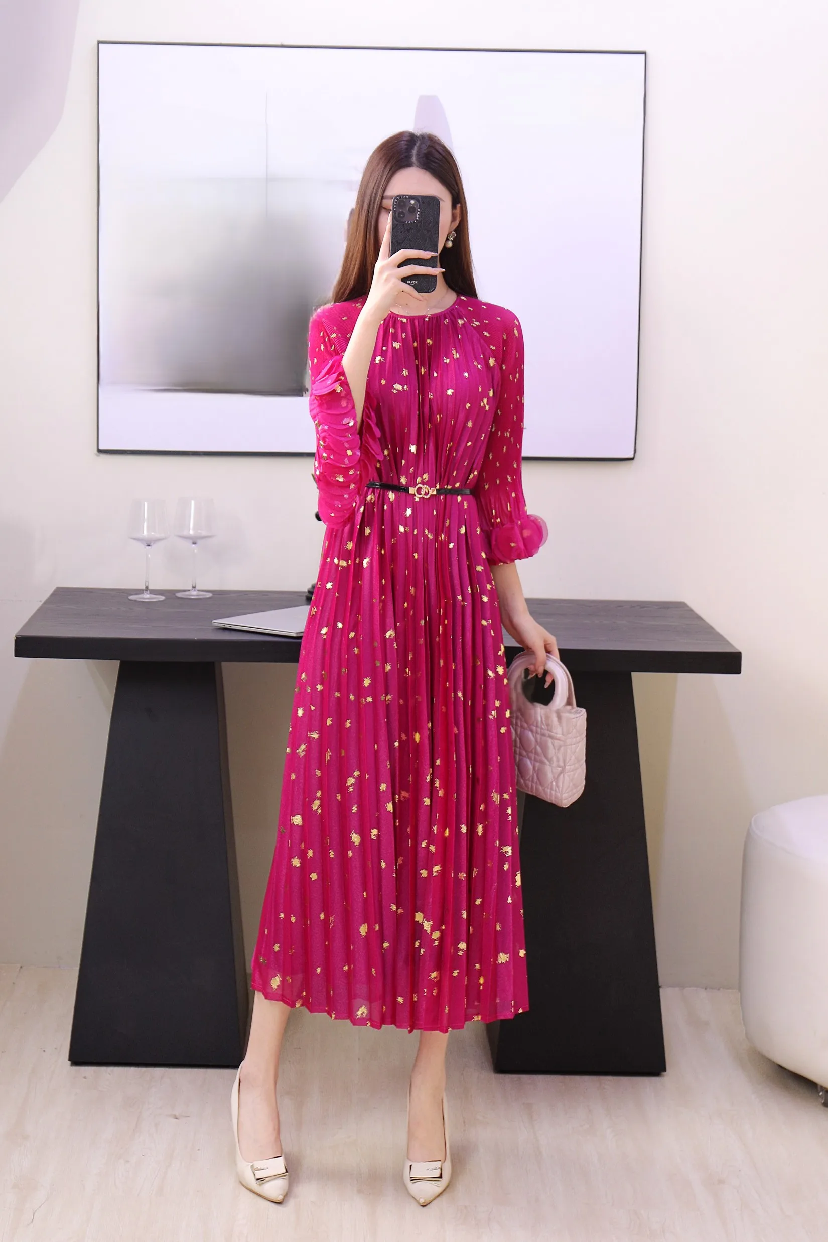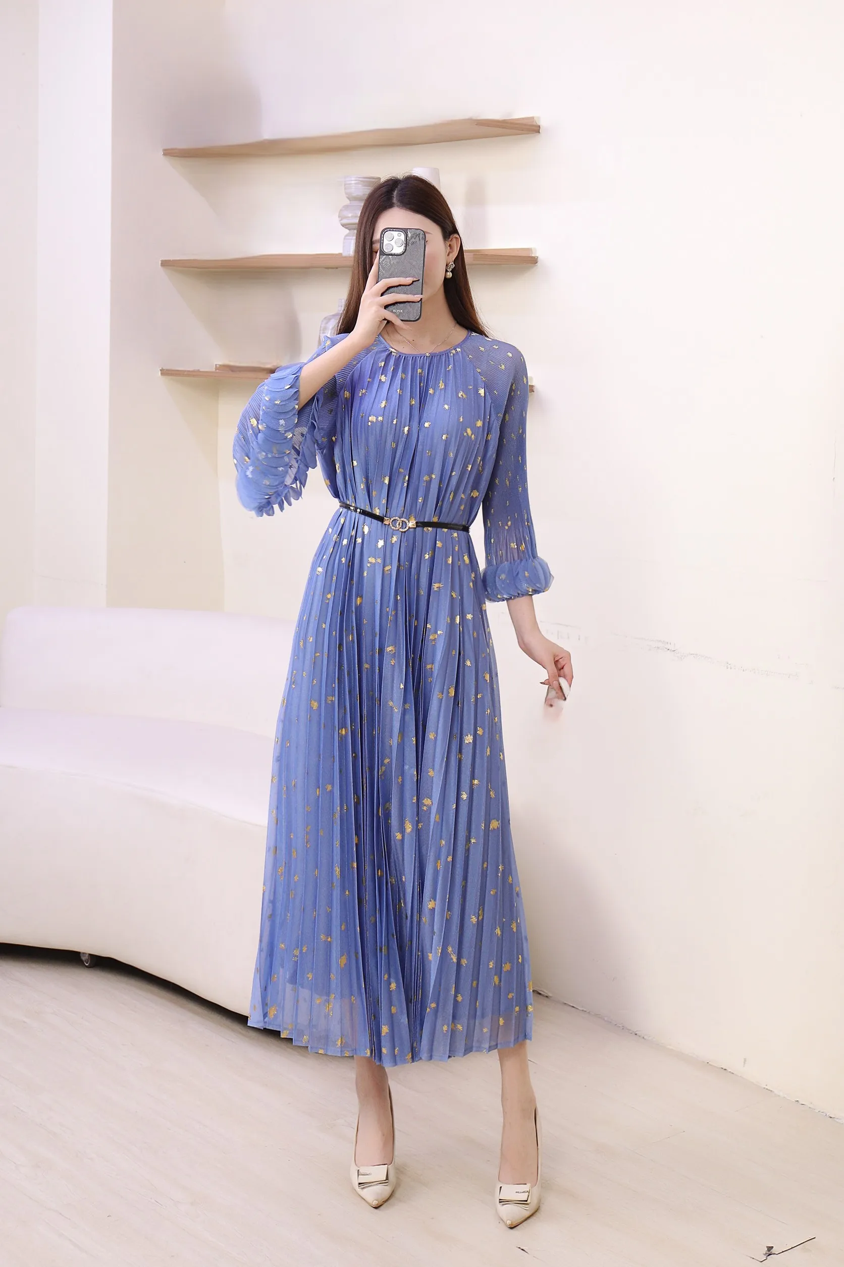Mid-length Pleated Dress Wholesale - Comfortable Round-neck Short-sleeved Large-size Dress in Stock