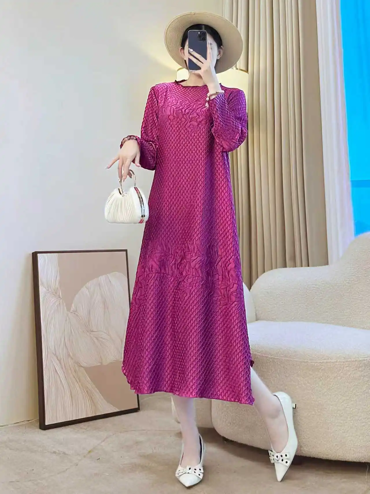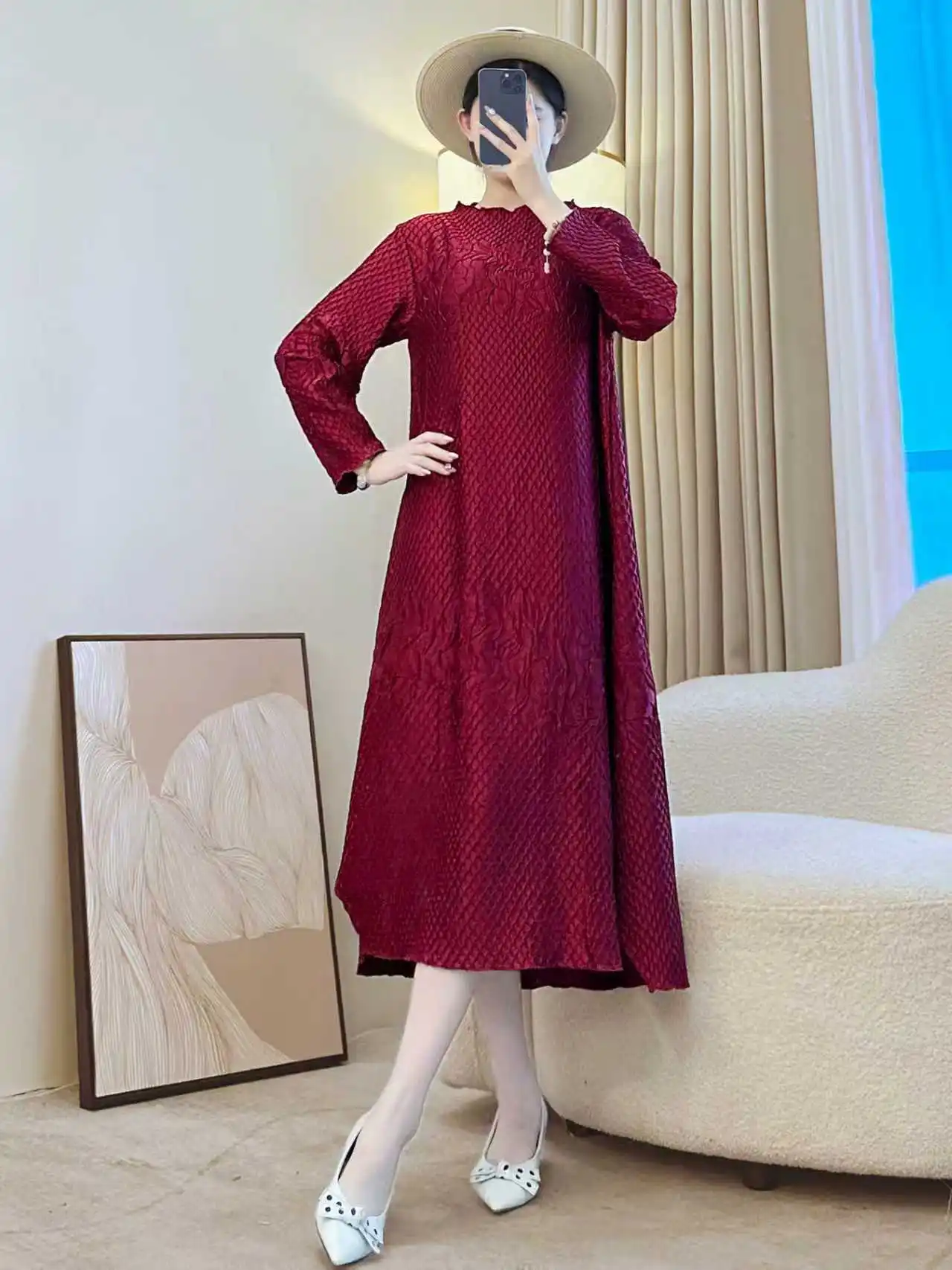 2025 Autumn Embroidered Plus-Sized Dress - Elegant and Graceful Ruffled Dress - Manufacturer Wholesale