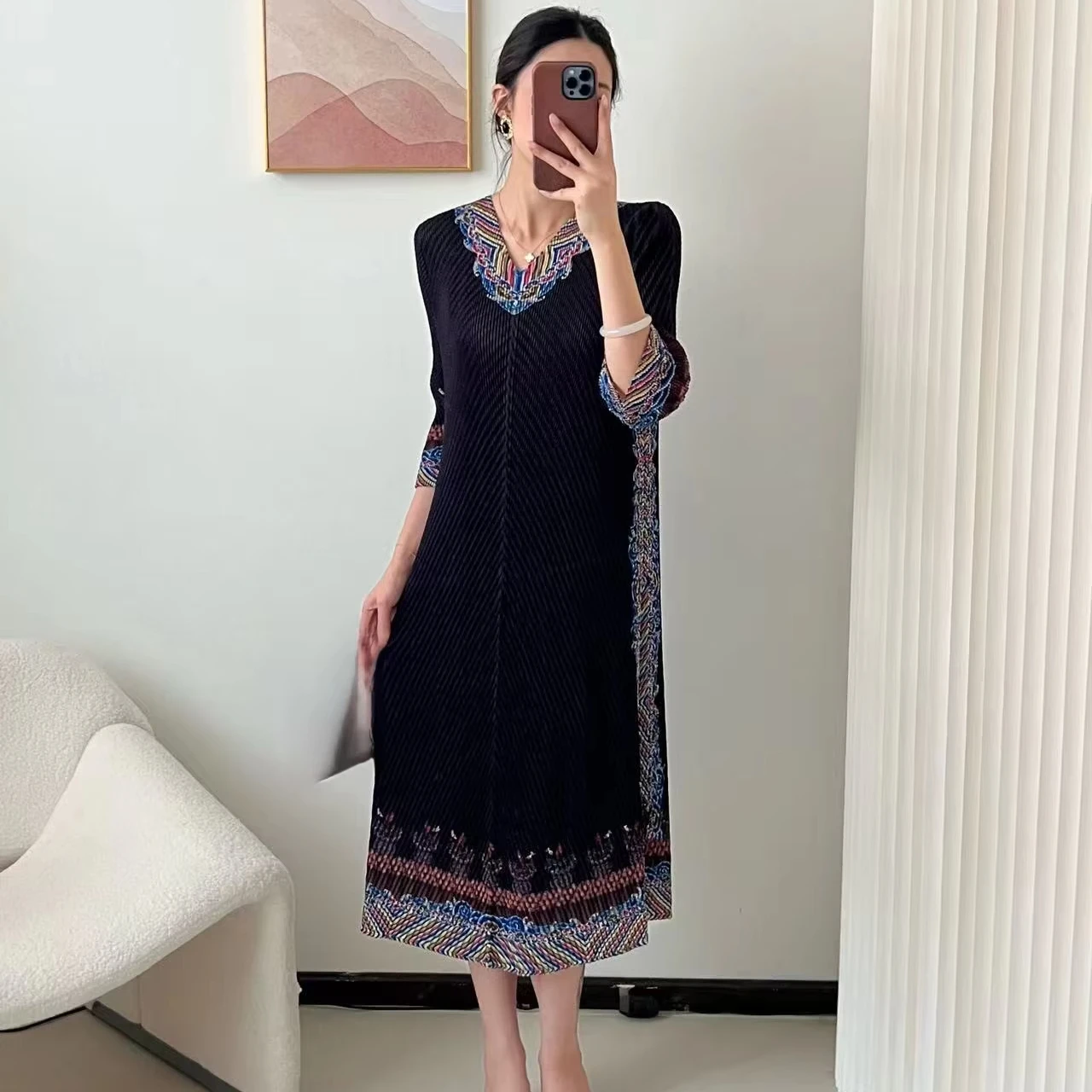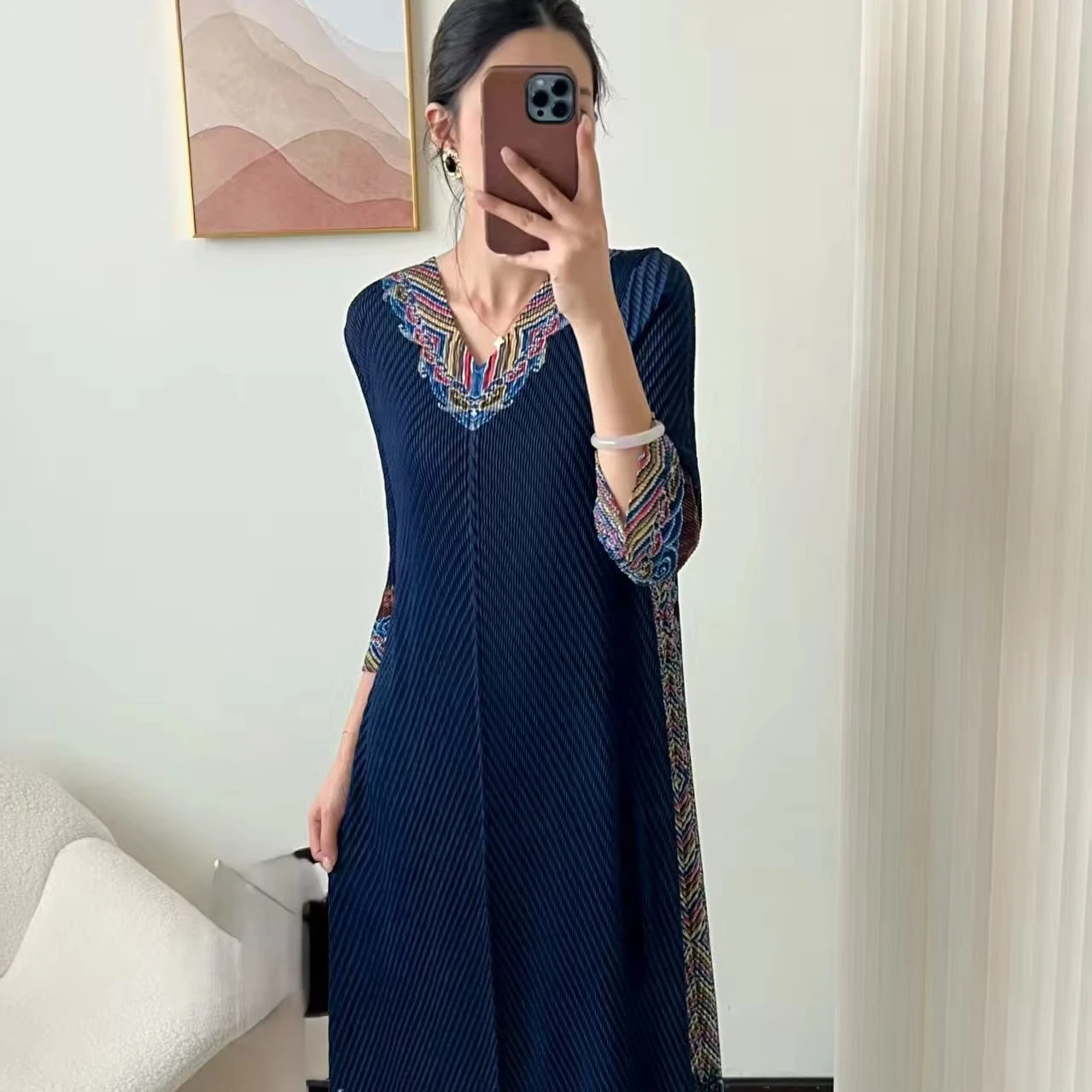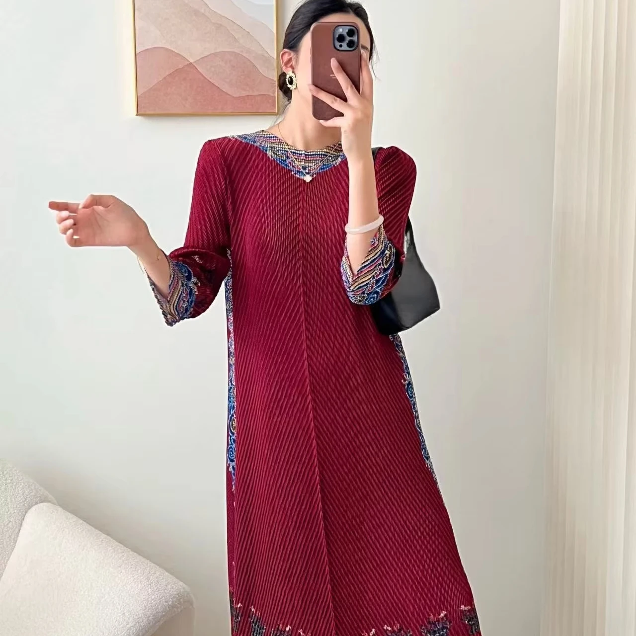 Elegant Pleated Dress with High Elasticity - Size-Free & Plus Size Friendly