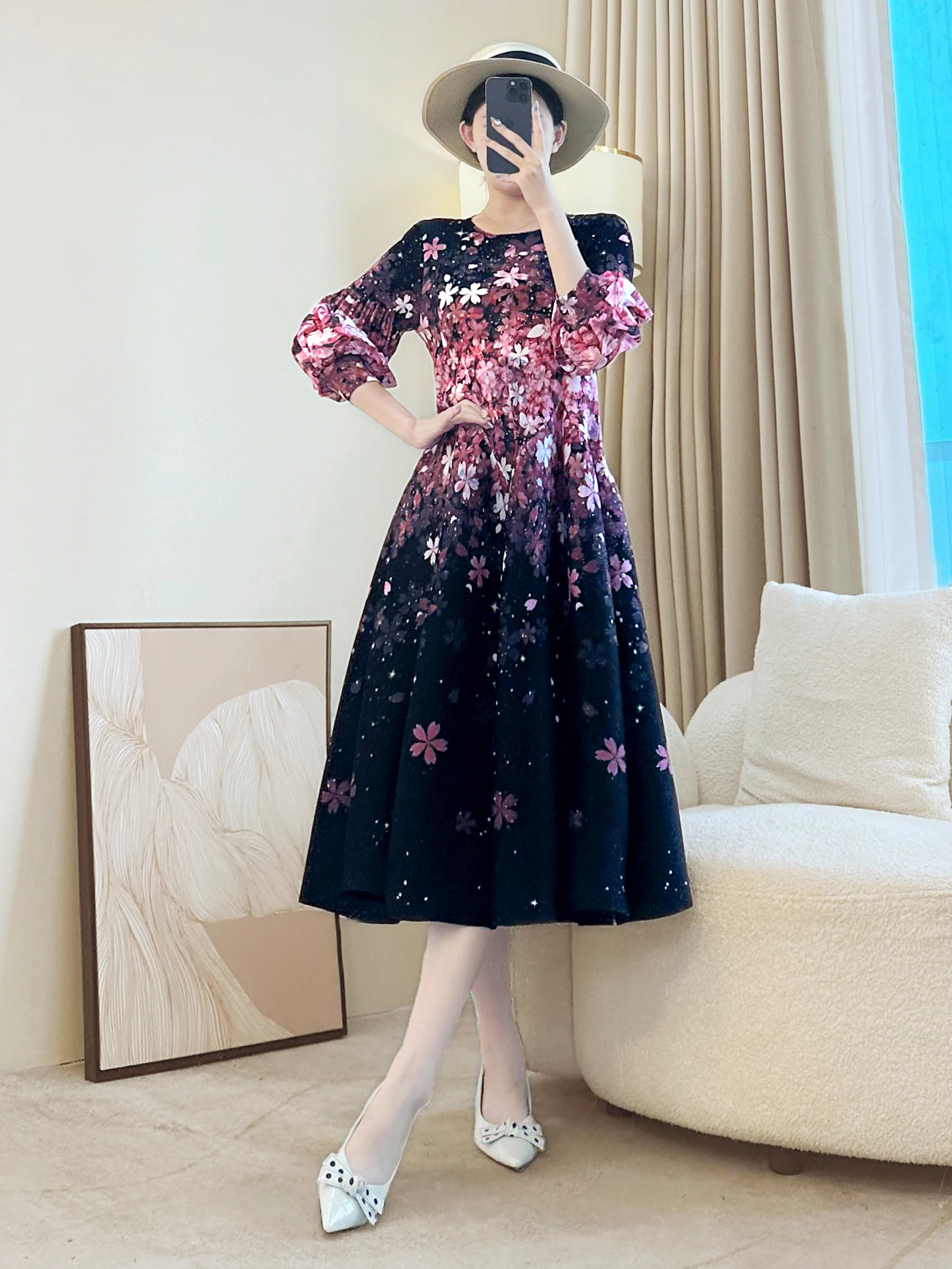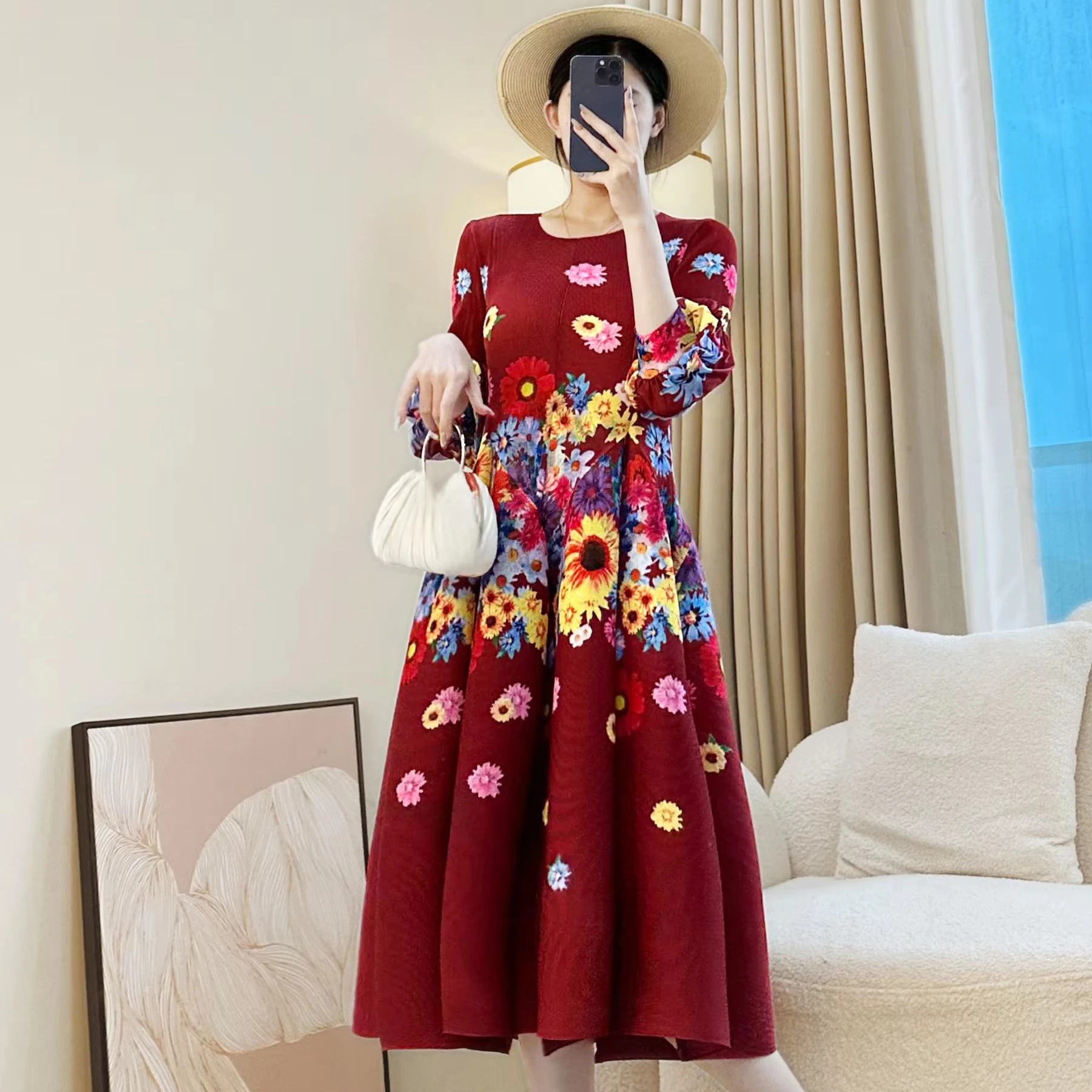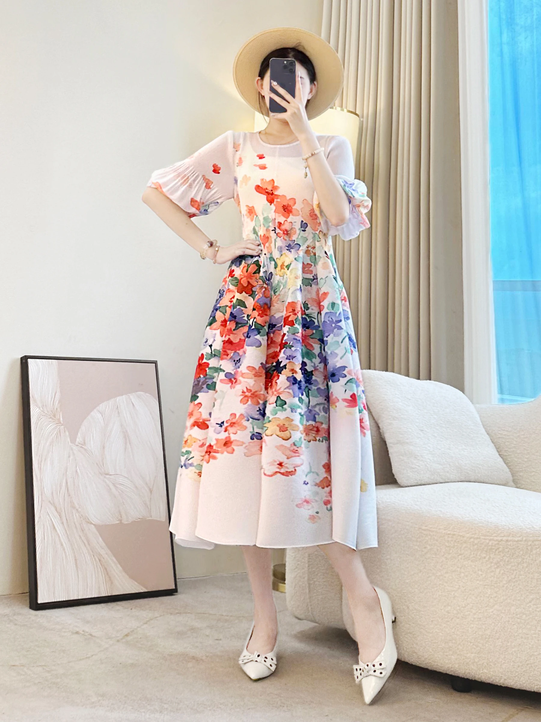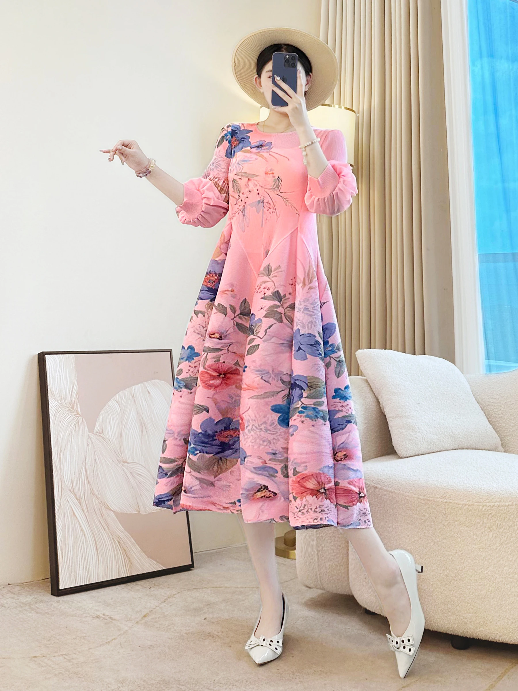 Korean-style Pleated Dress Manufacturer - Wholesale Fashionable Printed Round-neck Large-size Dresses