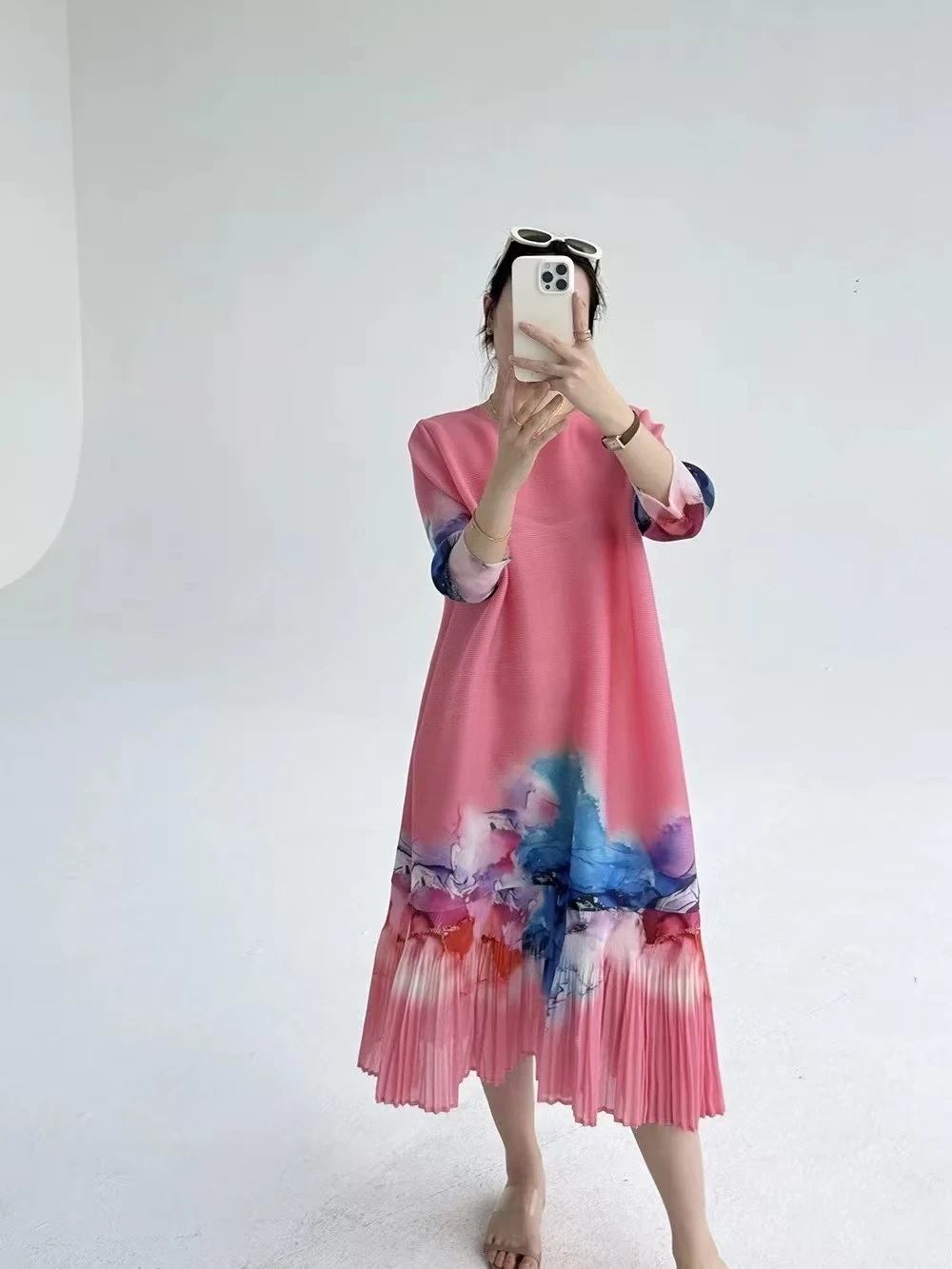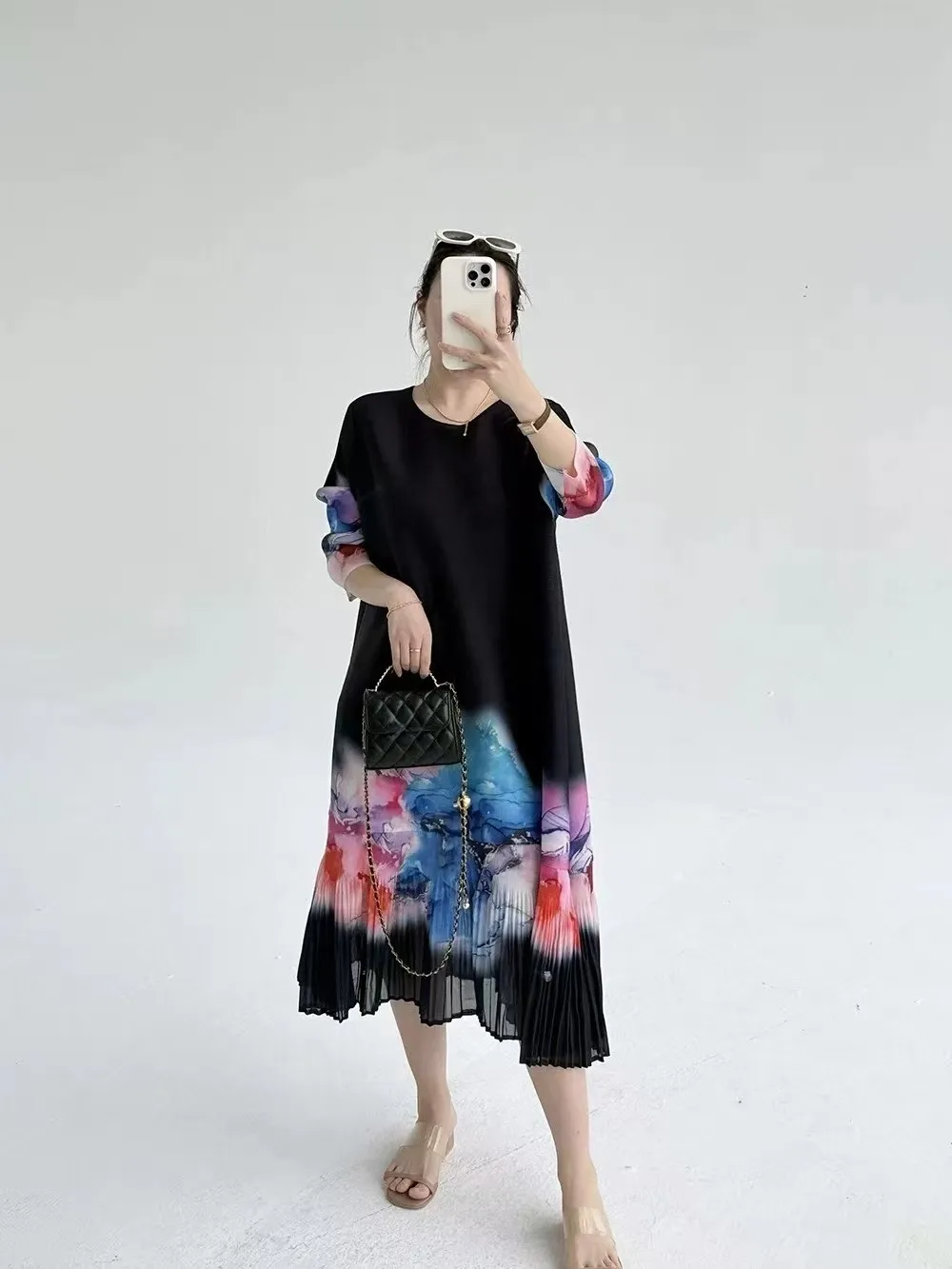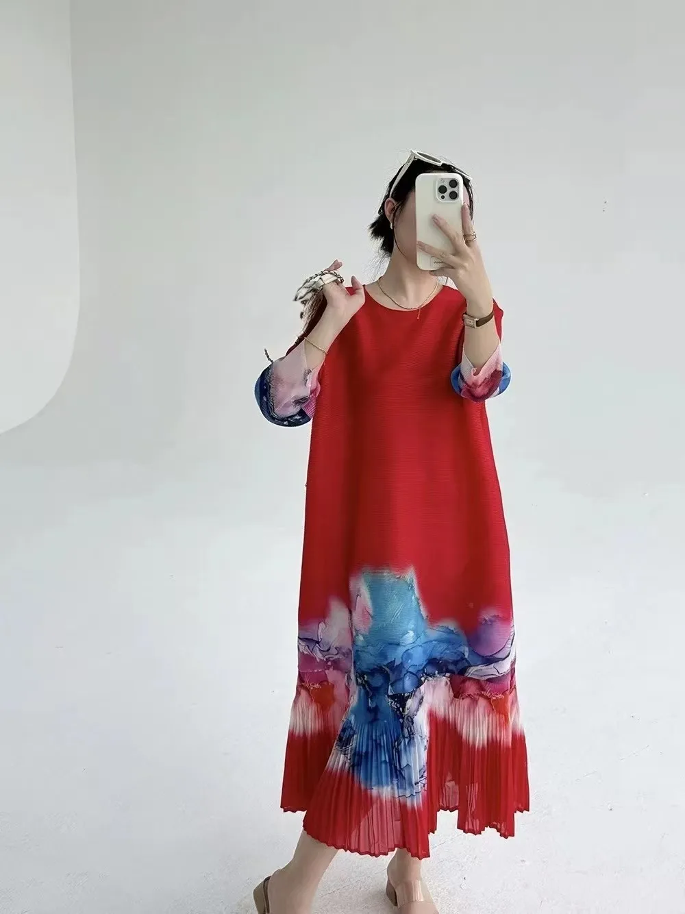 The Lady's Pleated Dress Is Suitable for Fashionable Printed Large-sized Women's Clothing for Both Europeans and Americans