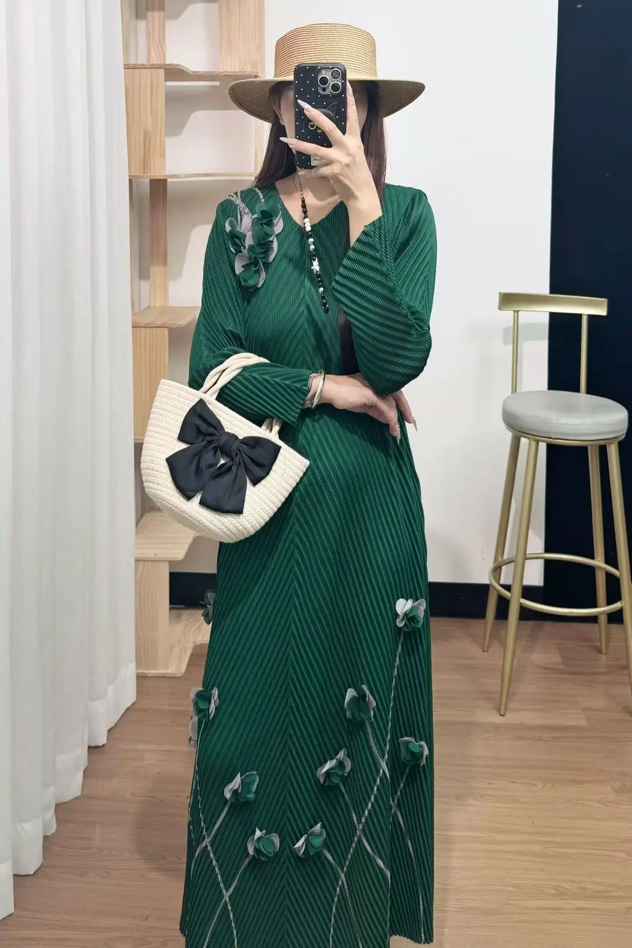 High-end Elegant Casual Plus-size Dress Manufacturer - Wholesale Round-neck Long-style Pleated Dress