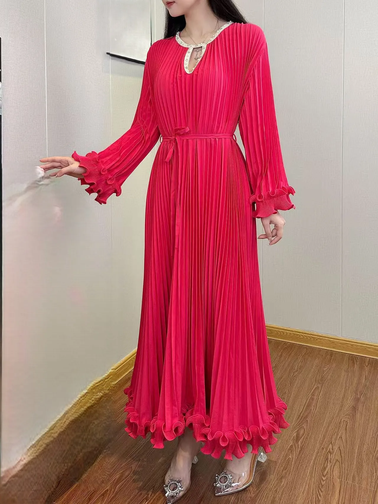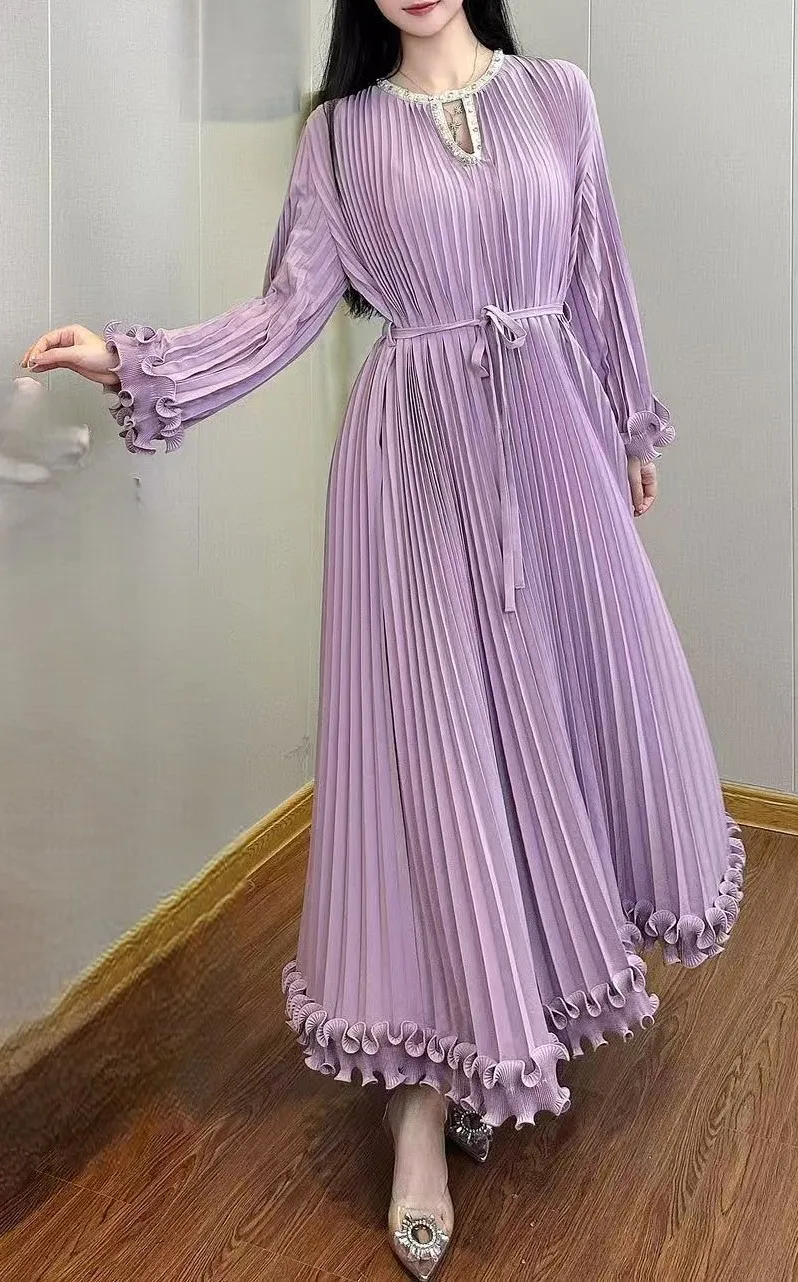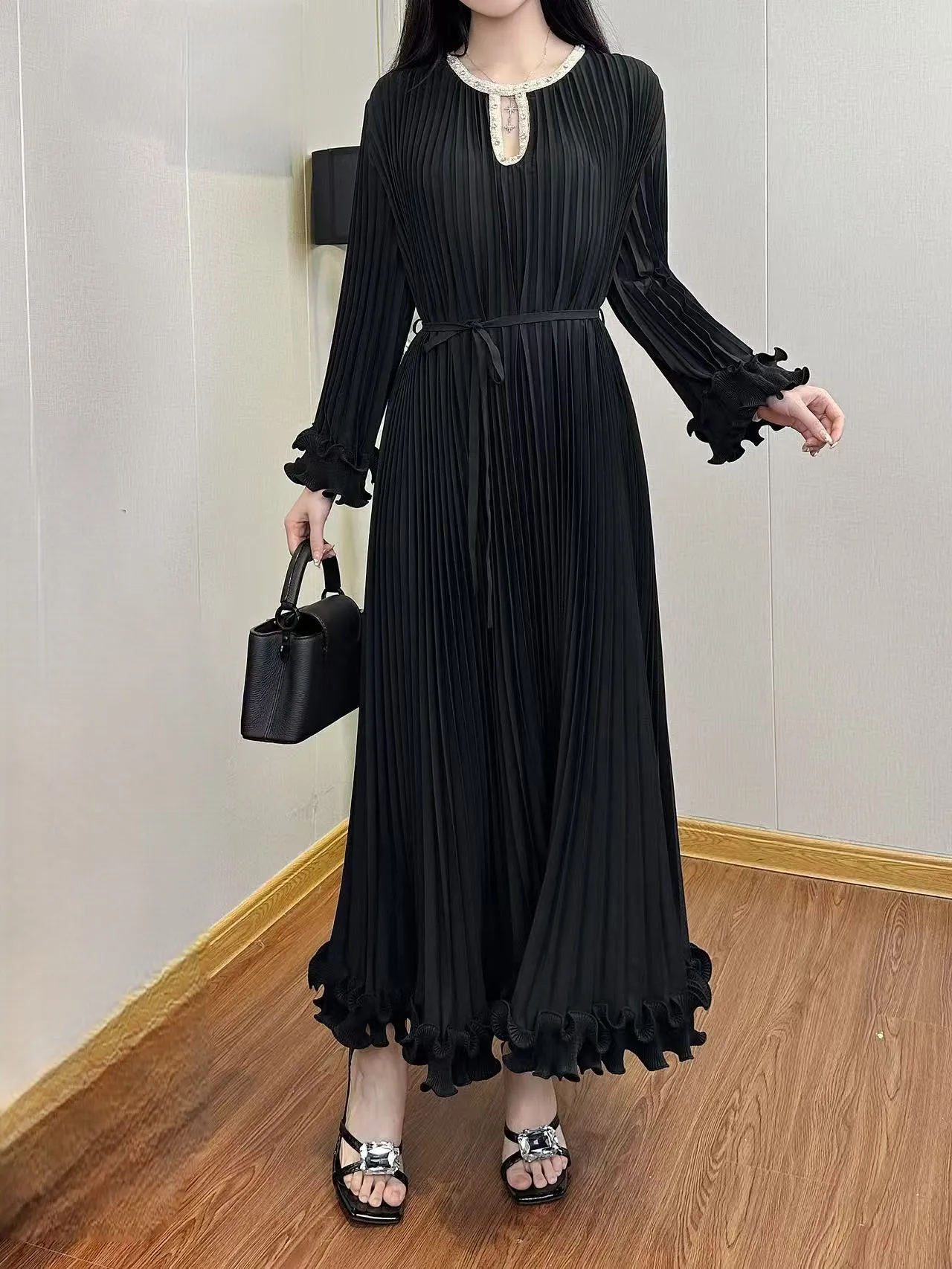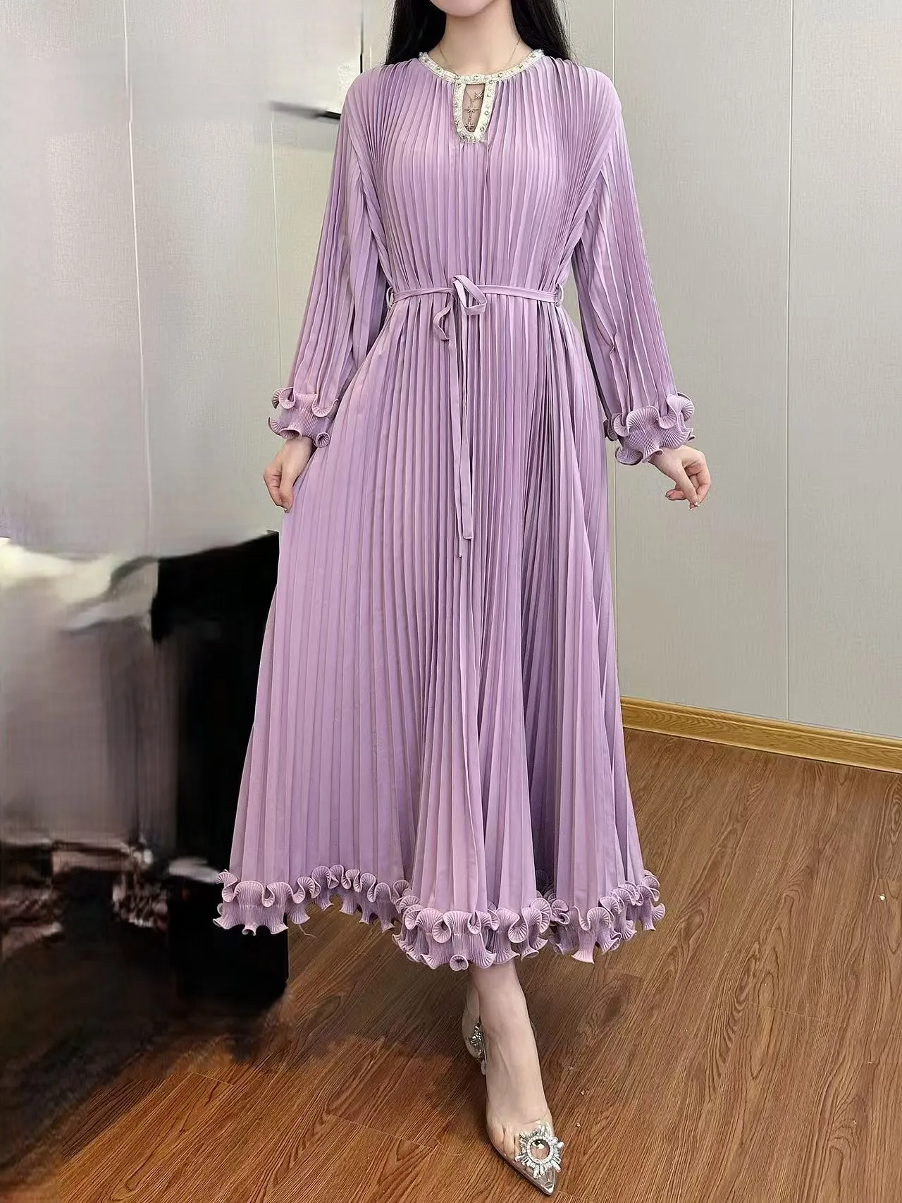 New Loose Large-sized Dress Manufacturer - Wholesale of European-style Plain-colored Dresses with Belts and Pleated Designs