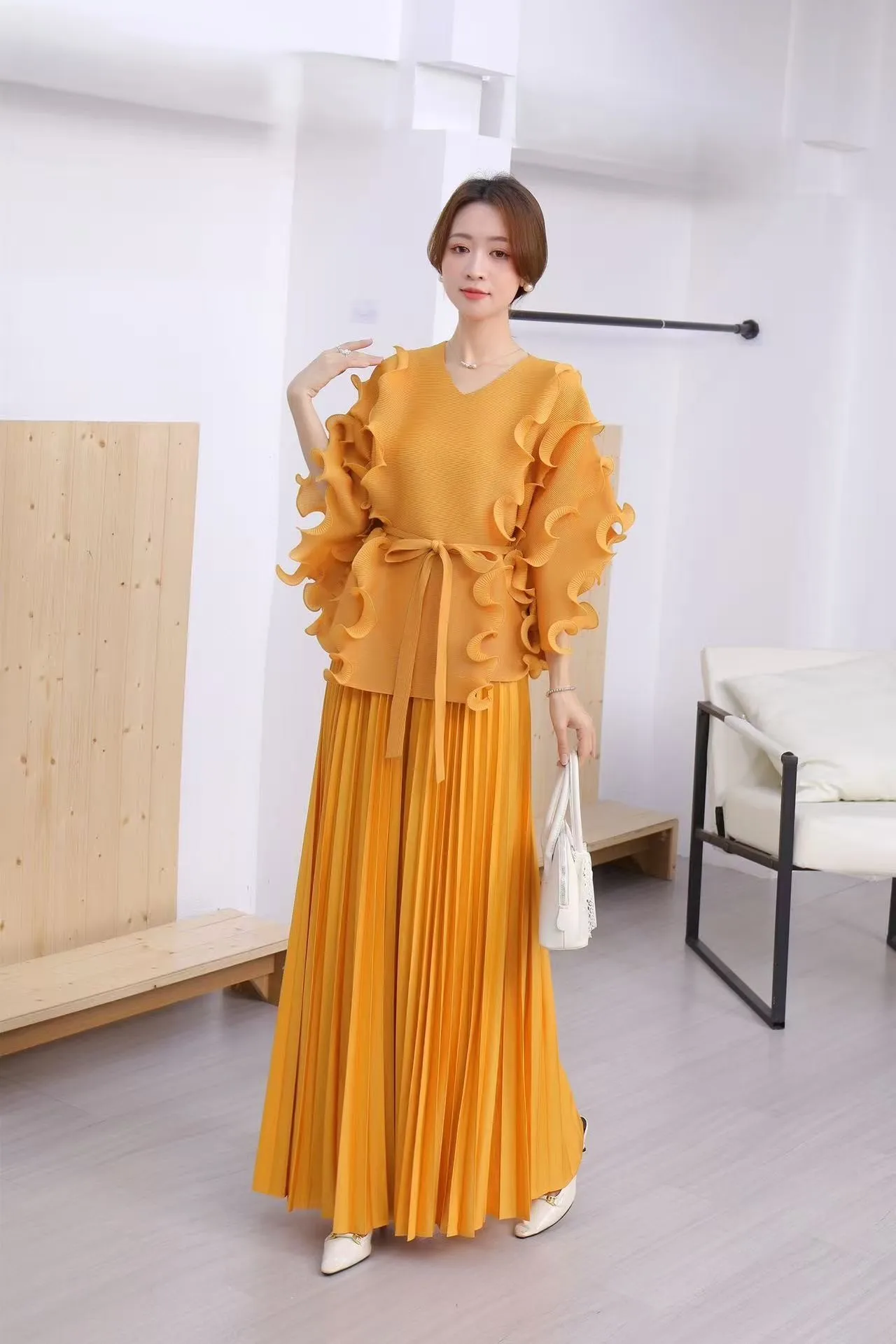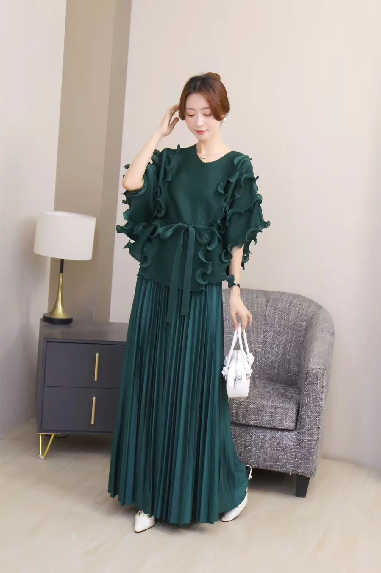 ZYHT 73849 European Wholesale Fashion Casual One Shoulder Ruched Maxi Dress Side Slit Pleated Long Sleeve Dresses for Women