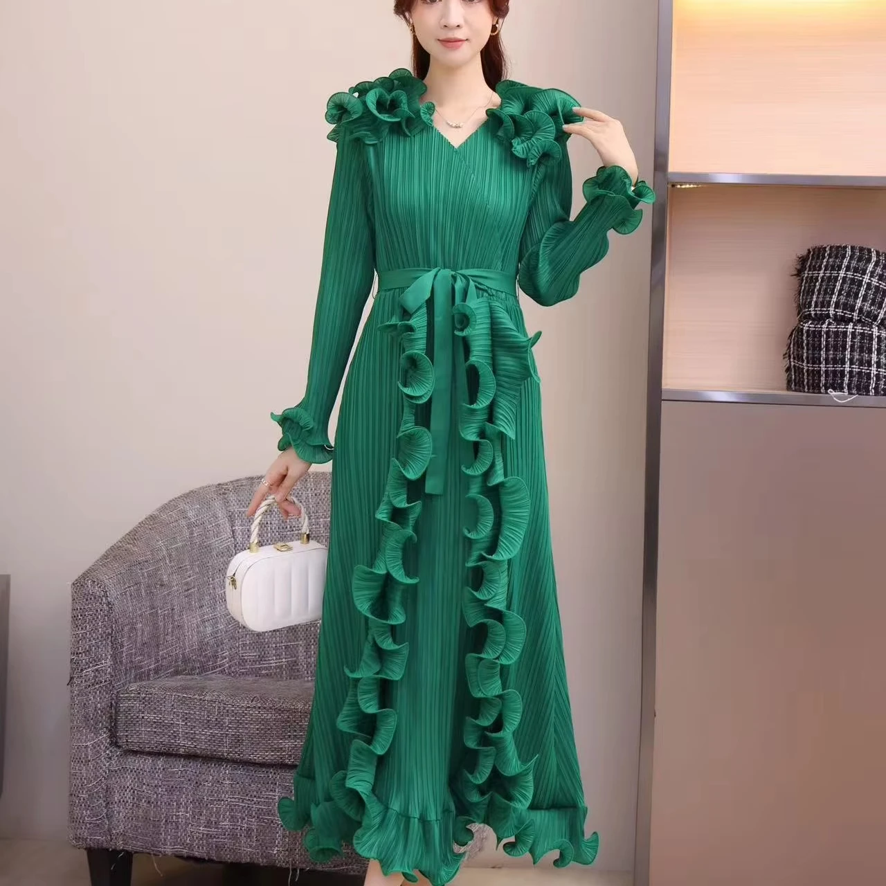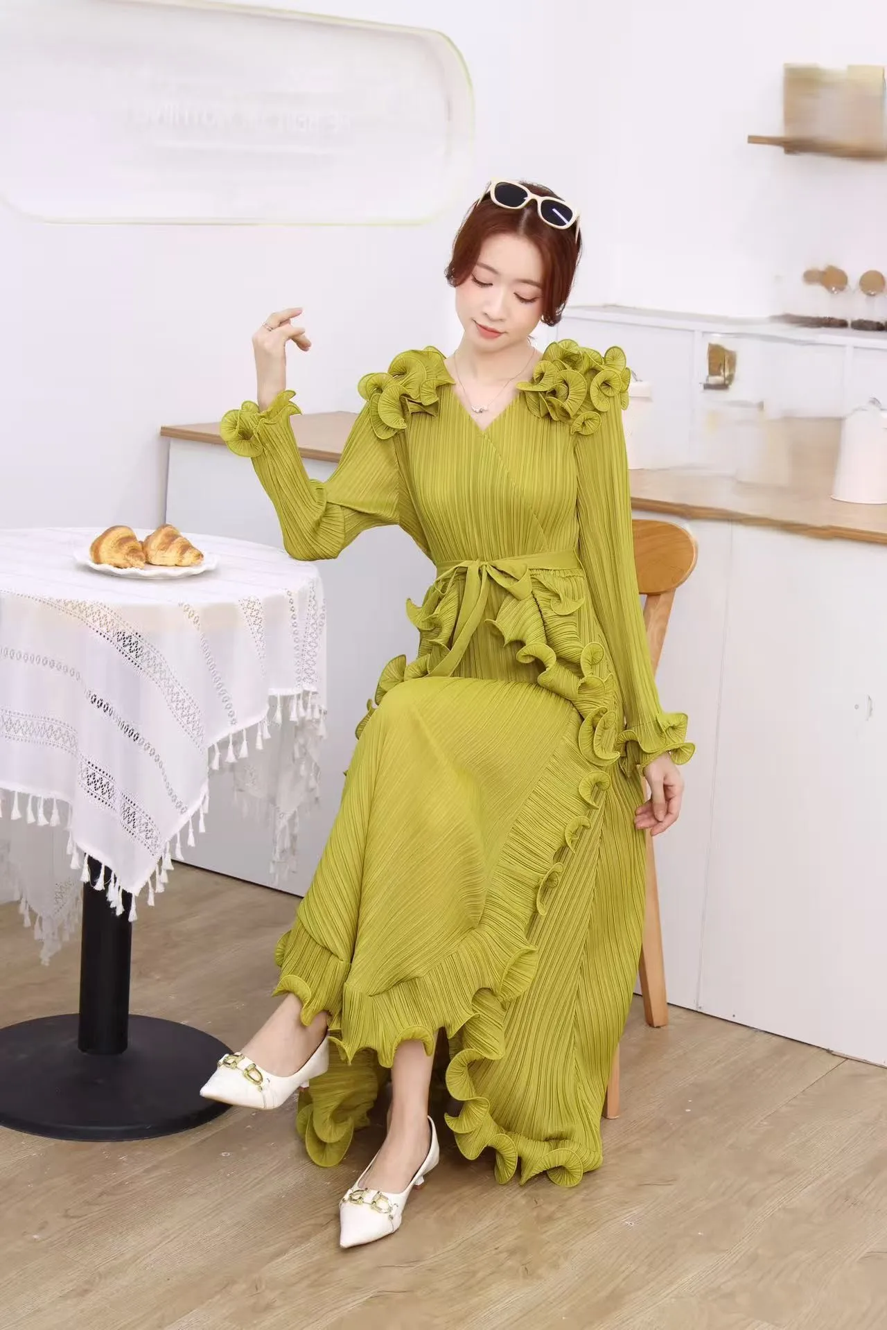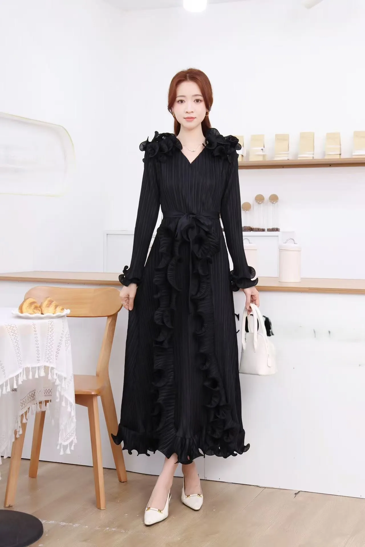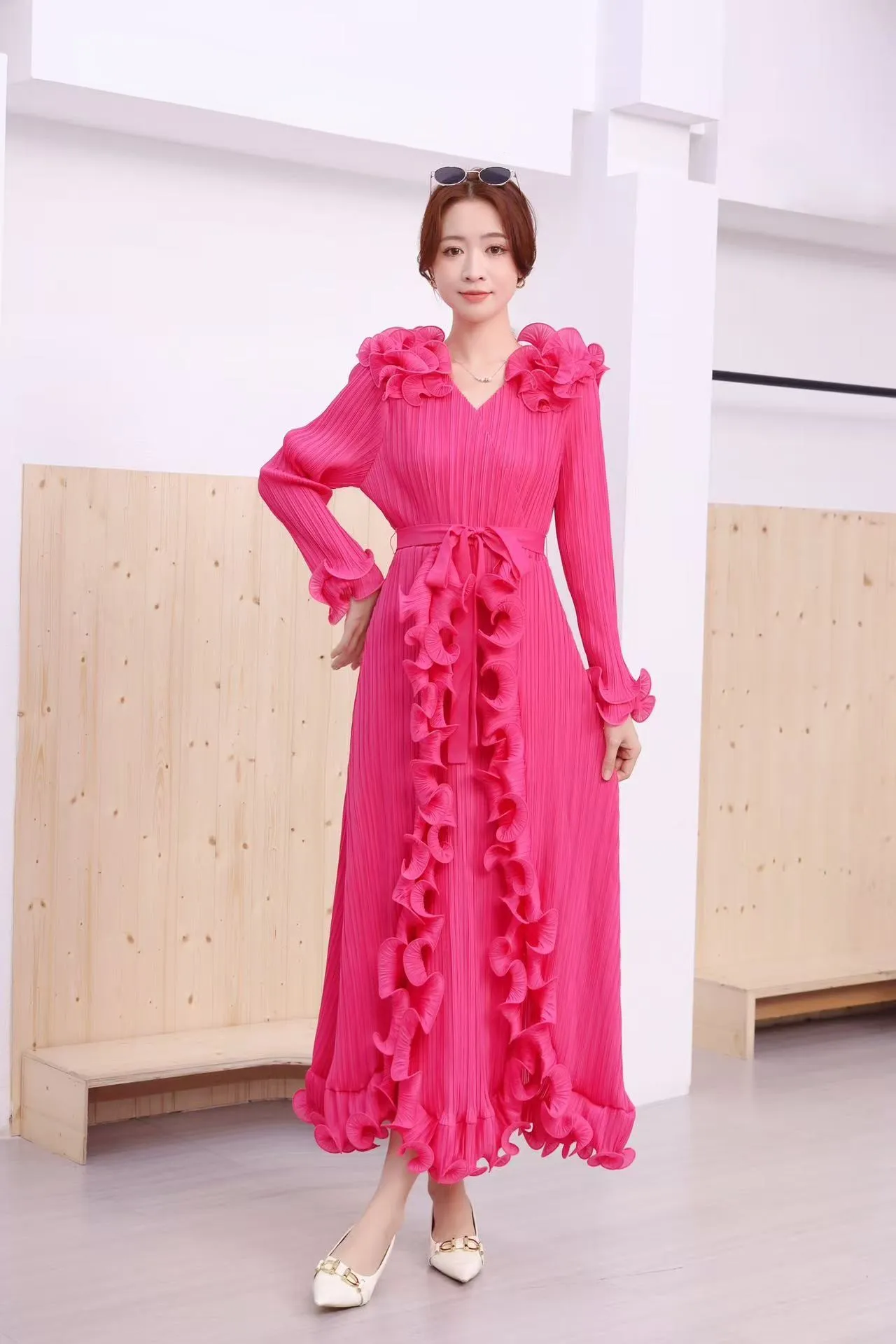 Designer Dress Manufacturer Offers Ready-to-wear Fish Silk Thread Designs for Oversized Pleated Dresses