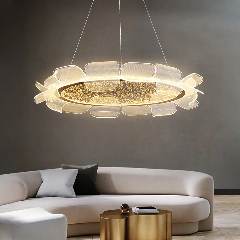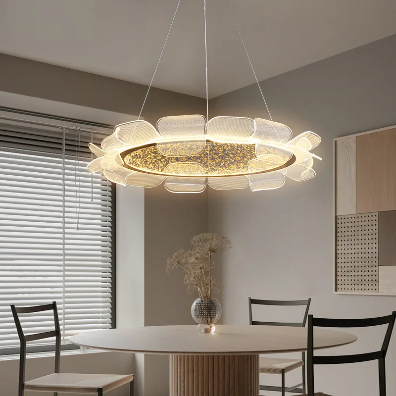 JACKSUN Italian Restaurant Main Light: Sophisticated Floral-Patterned Postmodern Bedroom Acrylic Translucent Pendant Light