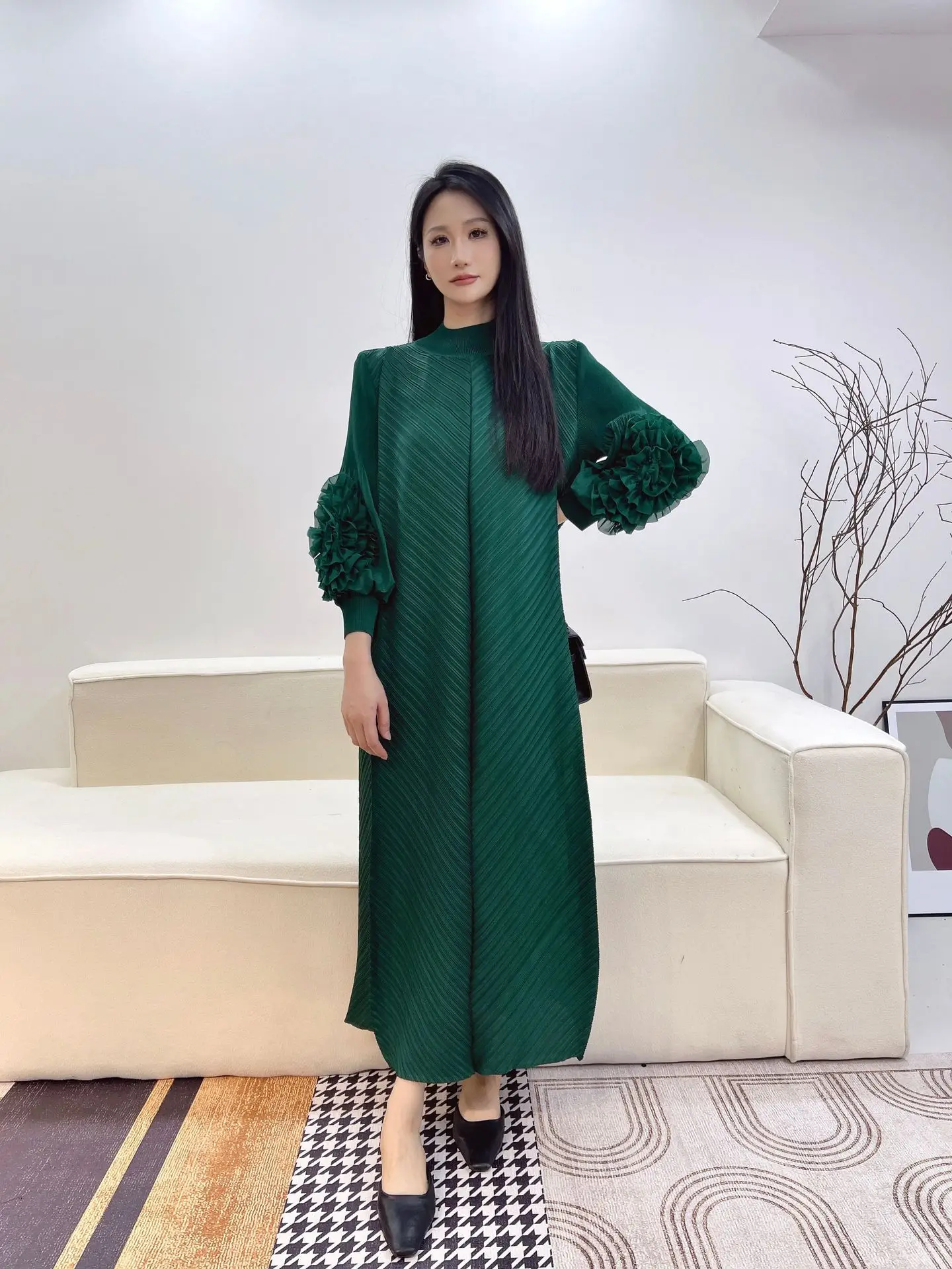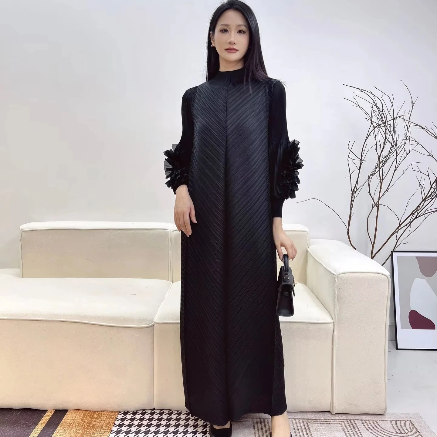 Pure Color Loose Long-sized Large-size Dress Manufacturer for Wholesale - Soga Pleated Dress