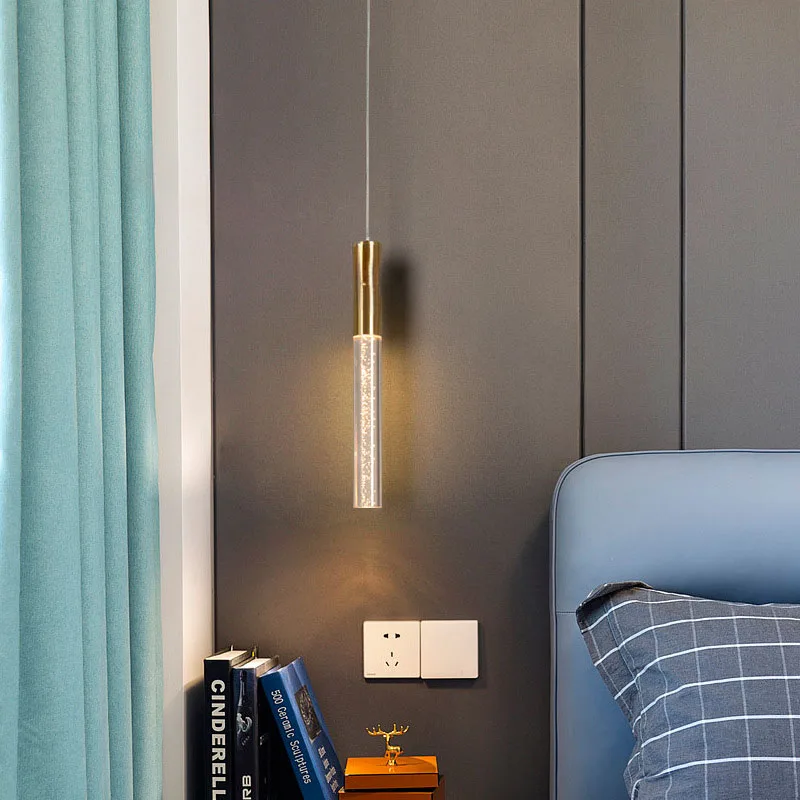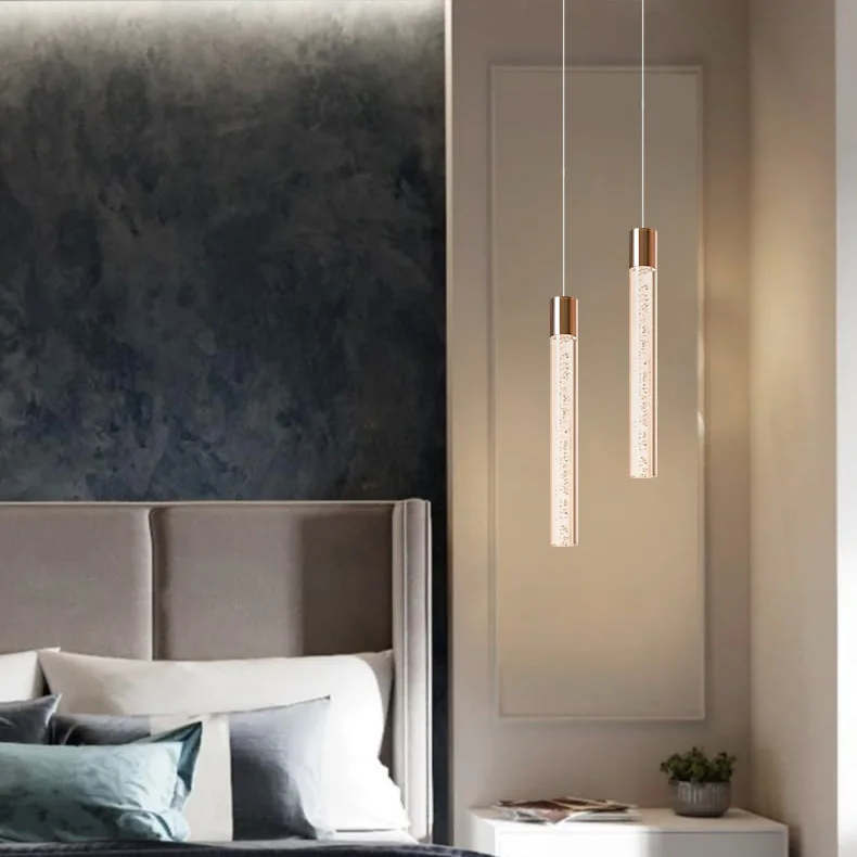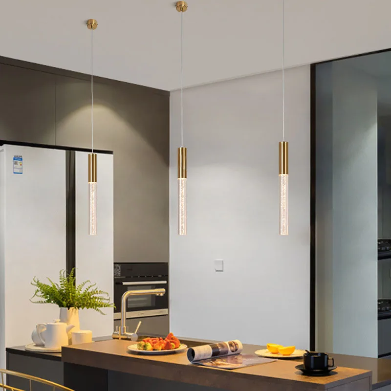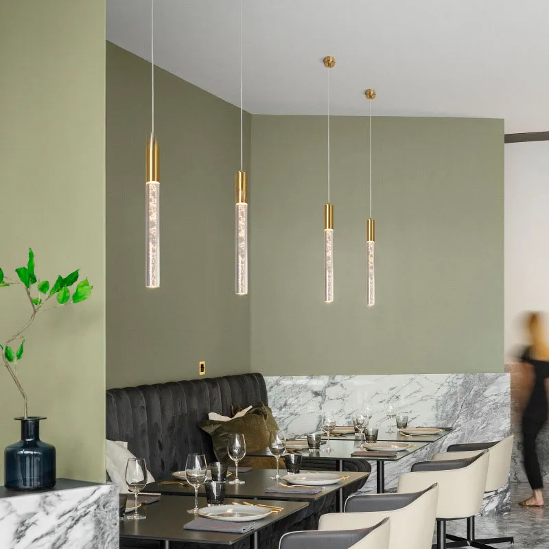 JACKSUN Long Luxury Bubble Crystal Column Aluminum Chandelier Bar Small Stairwell Light for Loft Villa Ceiling Installation