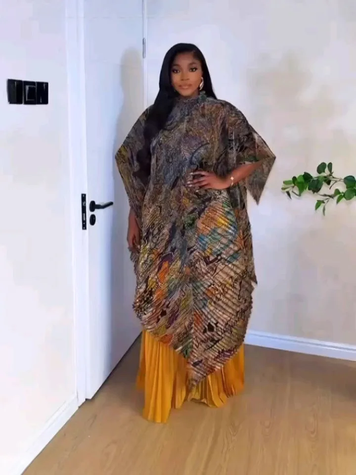 ZYHT 73957 Hot Selling Women Lady Printed Satin Beige Mermaid Fish Tail Floor Length Party Cocktail Evening Dress Gown