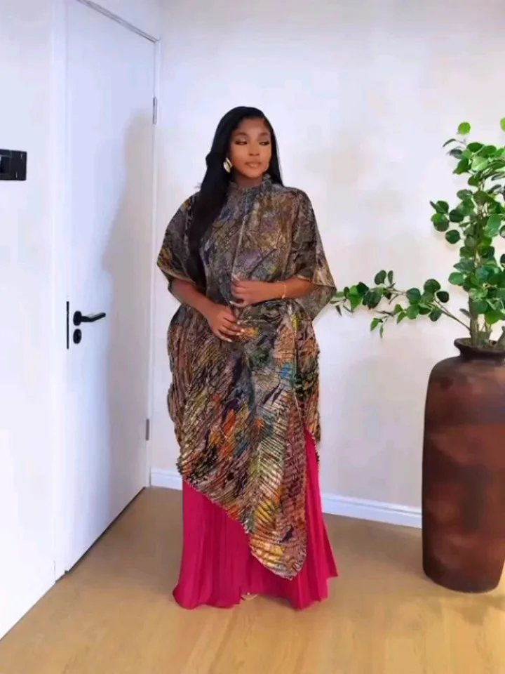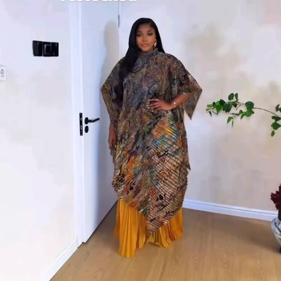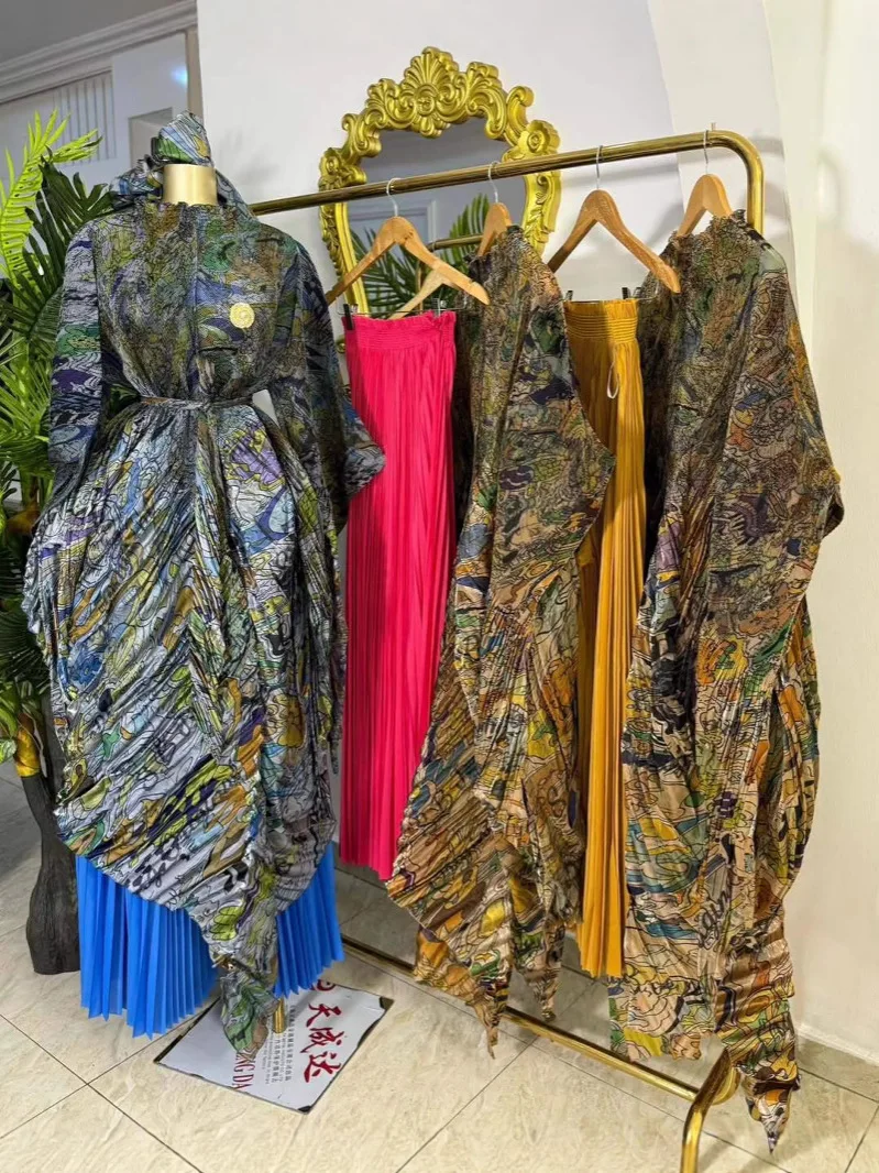 Miyake Pleated Suit with Elegant batwing Sleeves for Ladies' Two-piece Set Is Required