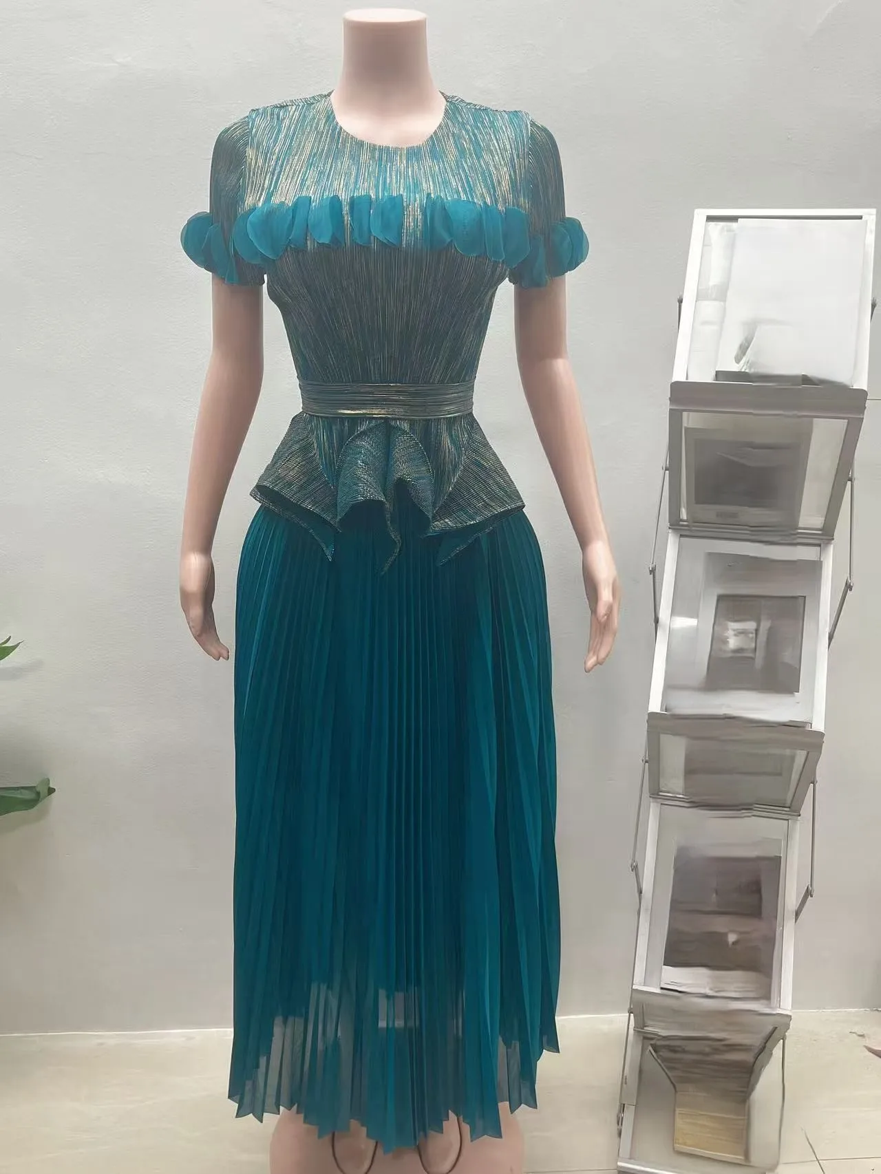 ZYHT 73902 Dark Green Blue Long Sleeve Simple Elegant Evening Dress Customize High End Women Clothing Manufacturer