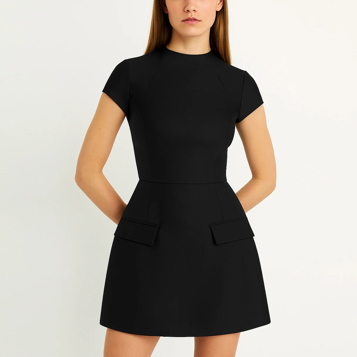 Custom Clothing Manufacturers Factory Fashion Designer Summer Elegant Ladies a Line Pocket Black Short Mini Dress for Women