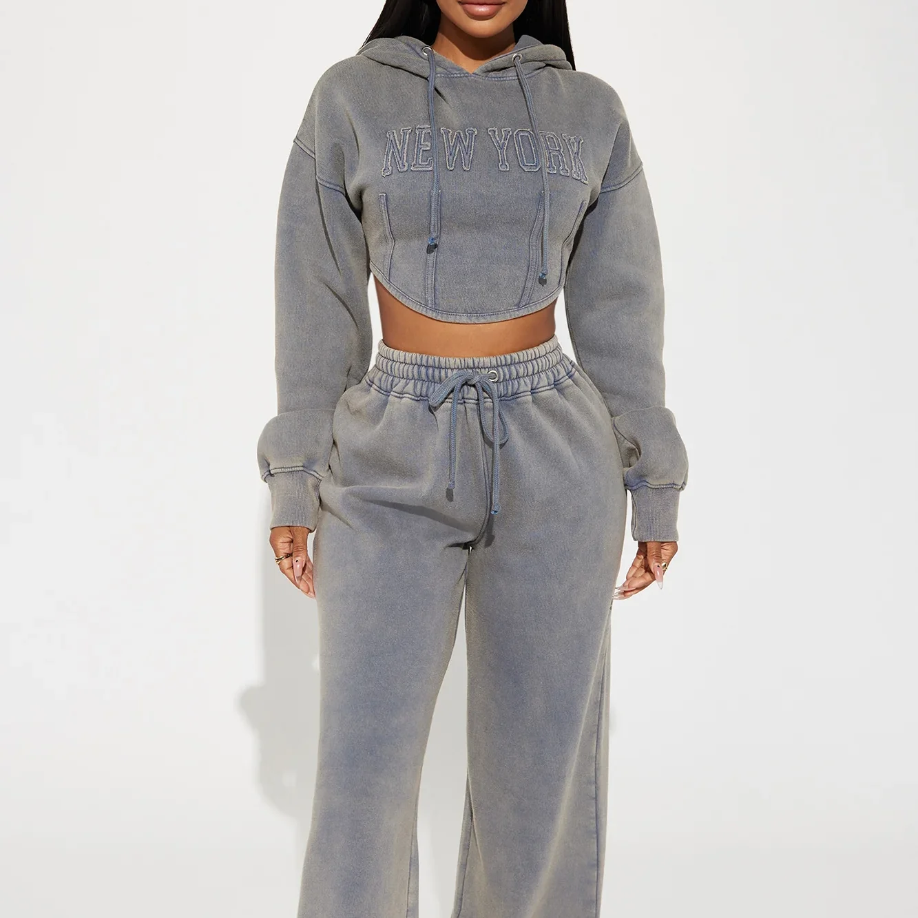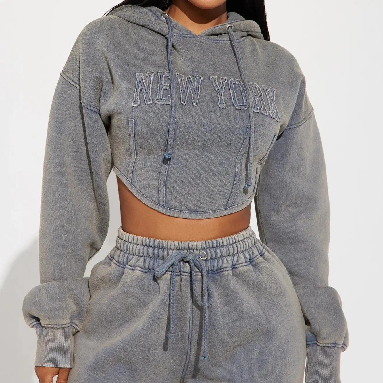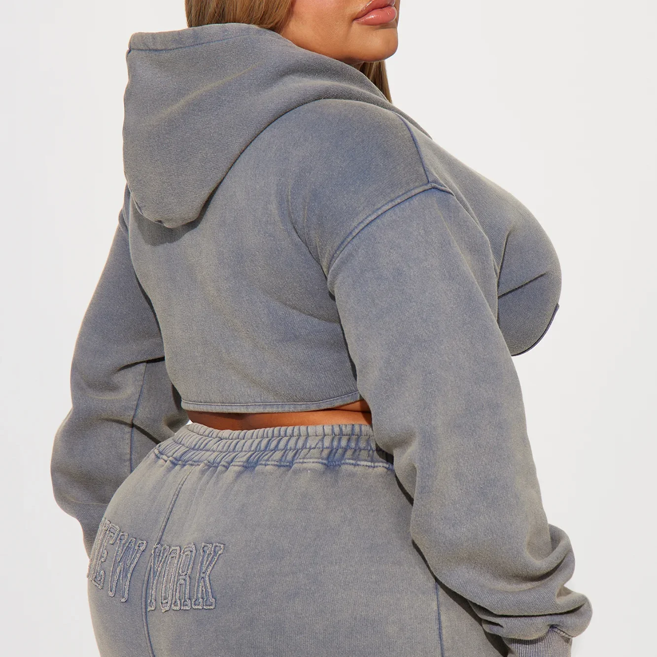 Hoodie 2 Piece Autumn Women Turtleneck Crop Hoodie Set Washed Sports Wear Letter Pattern Plus Size Tracksuits Logo Custom