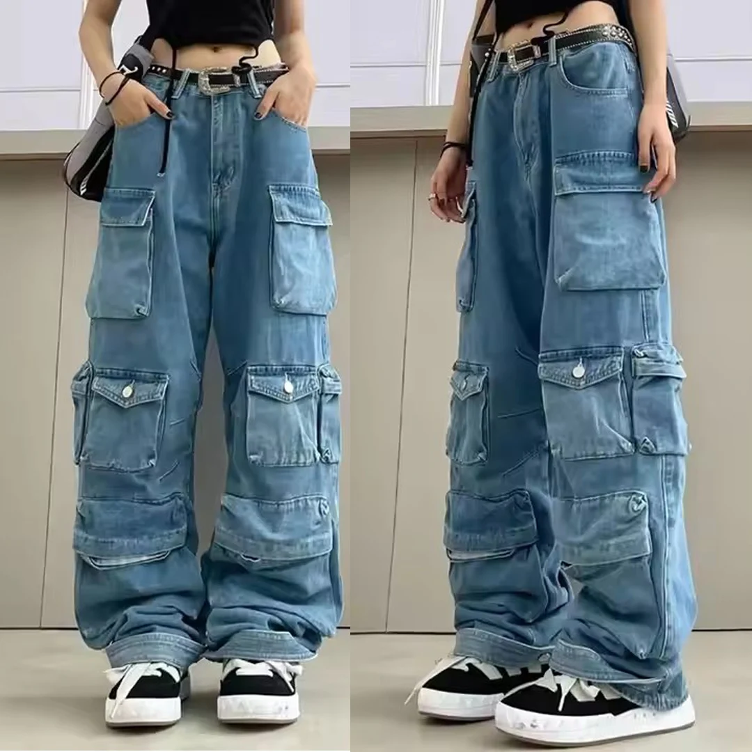Custom OEM Manufacturer Vintage Pockets Women High Waist Streetwear Baggy Casual LadyLong Parachute Cargo Pant Women Trousers