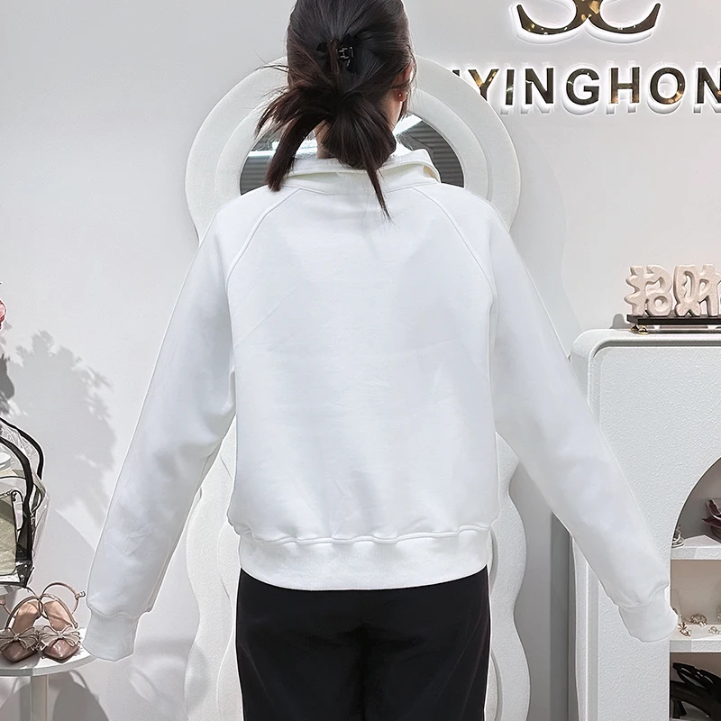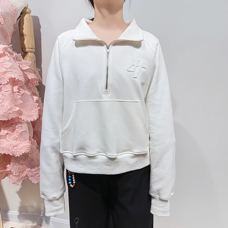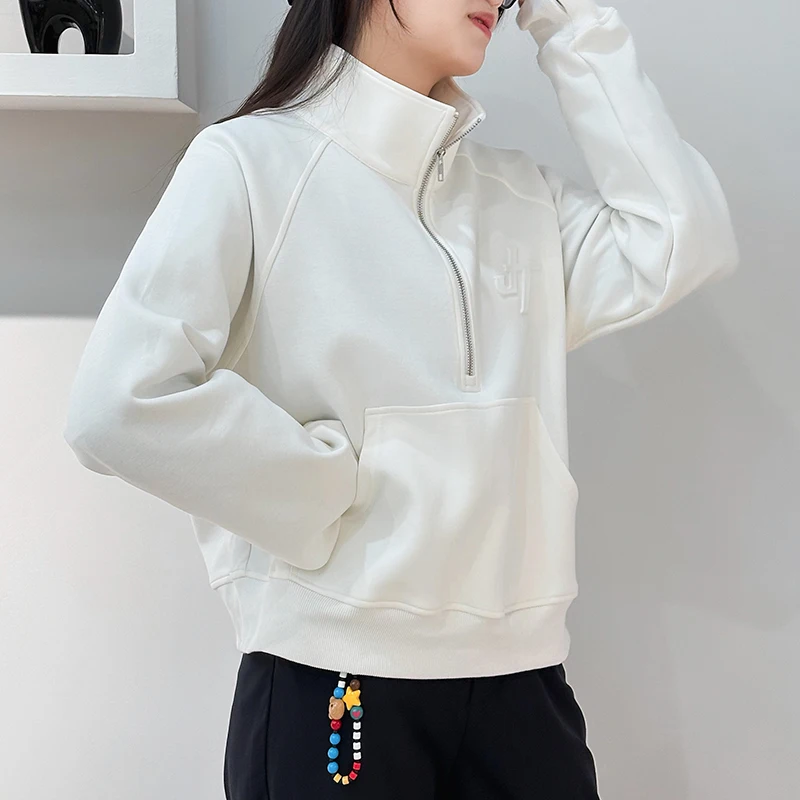 2025 Half Full-zip Fleece French Terry Pullover Hoodie Pants High Quality Oversized Sweatshirt Winter Zip up Jogger Women Hoodie