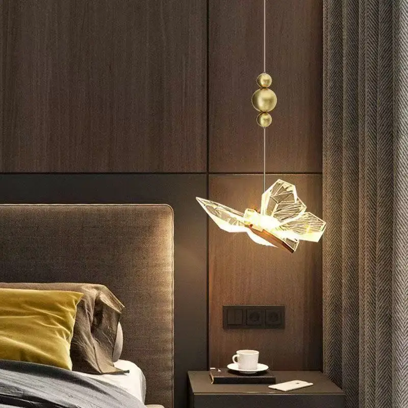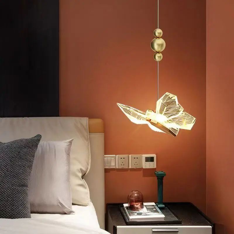 JACKSUN Luxury LED Butterfly Pendant Lights Modern Acrylic Small Hanging Lamp for Bedroom Bedside Indoor Pendant Lamp