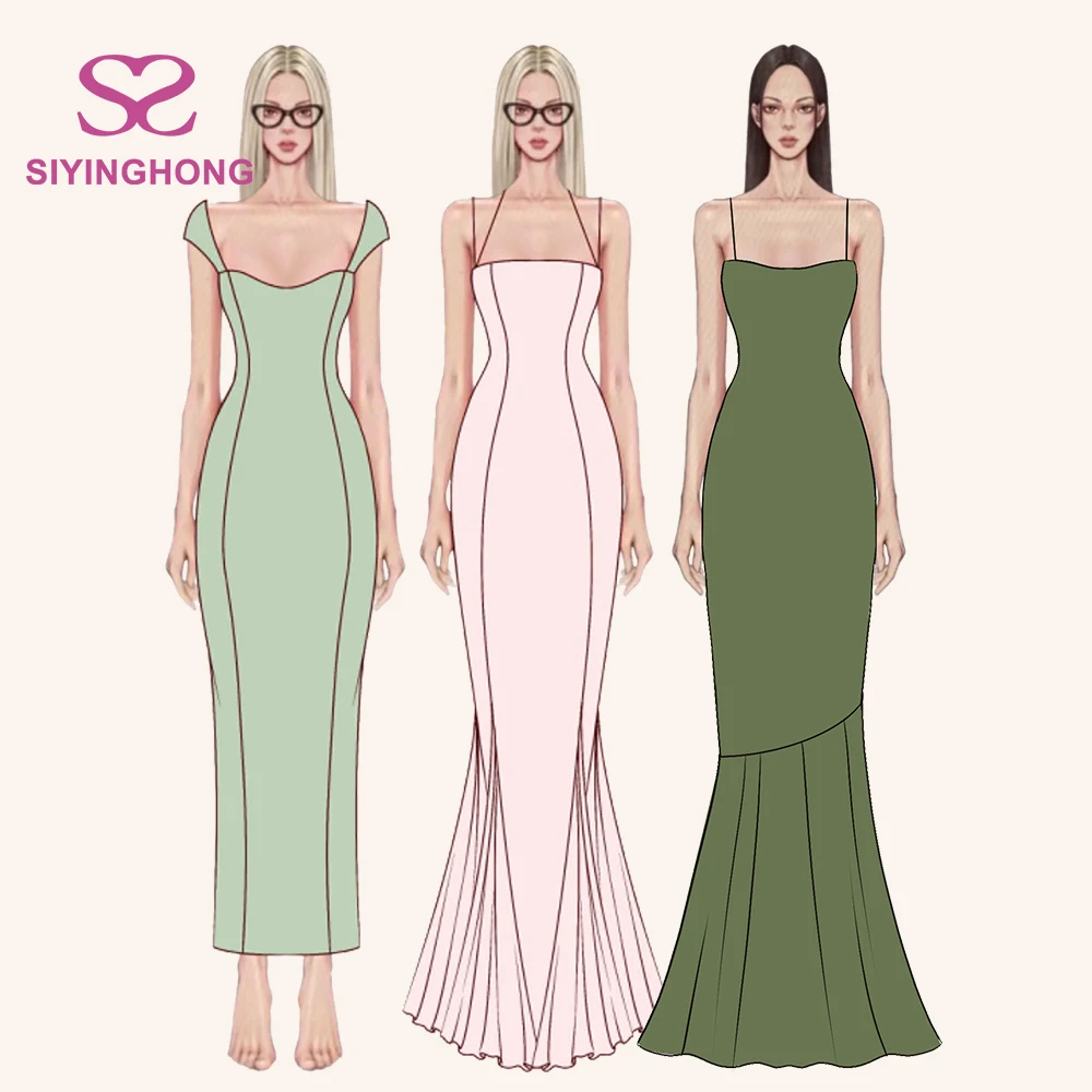 ZYHT 73957 Hot Selling Women Lady Printed Satin Beige Mermaid Fish Tail Floor Length Party Cocktail Evening Dress Gown