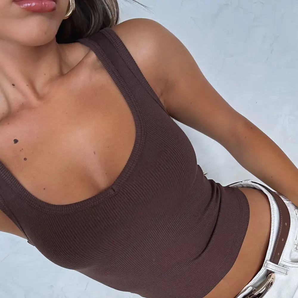 2026 Summer Hot Selling Lady Ribbed tank Top Tshirts Custom Logo Sexy U Neck Women Sleeveless Skinny Fitness Vest tank Crop Top