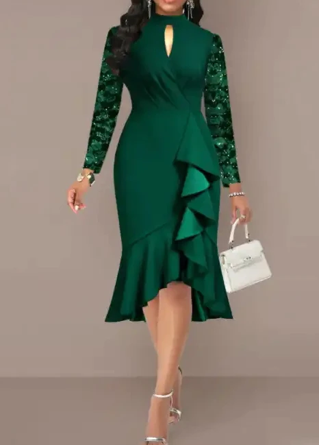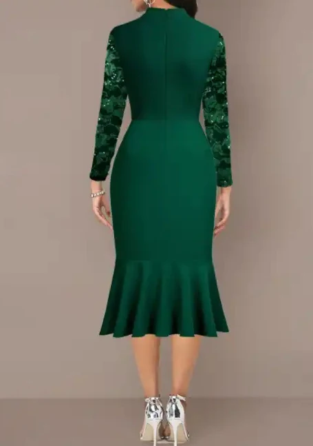 2026 Vestidos Undefined Ladies Clothes Women Casual Winter Office Business Work Flounce Lace Stitching Dark Green Mermaid Dress