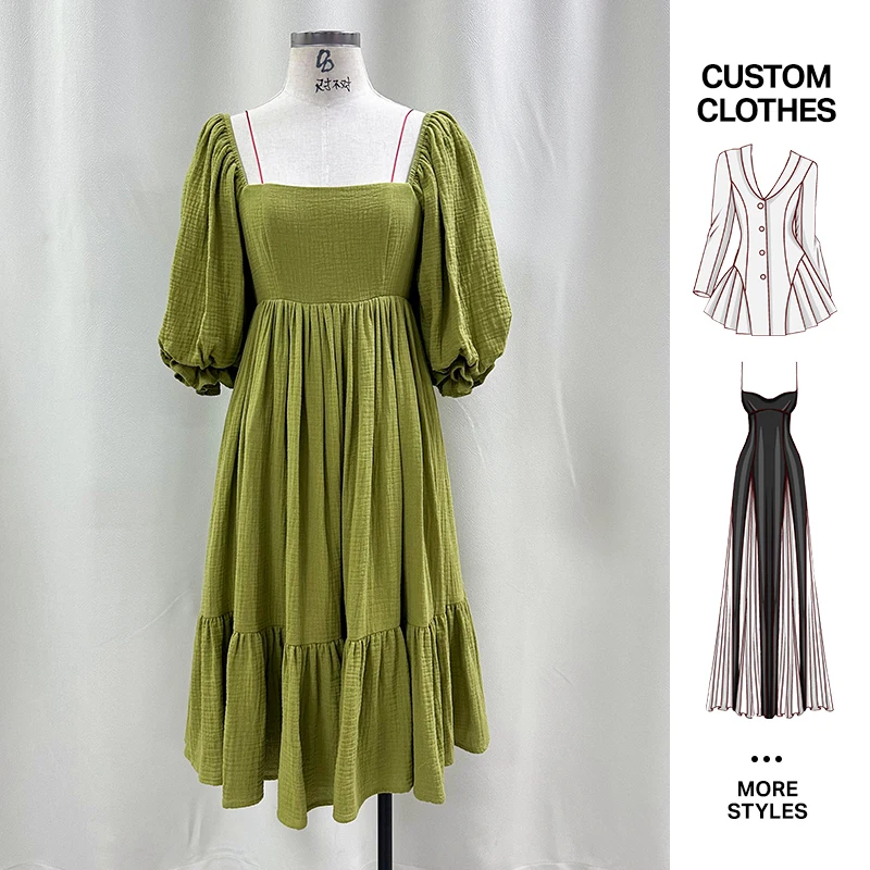 Clothing Manufacturers Wholesale Custom Casual Elegant Square Neck Dress With Ruffled Hem and Elastic Waist Women Clothes Wear