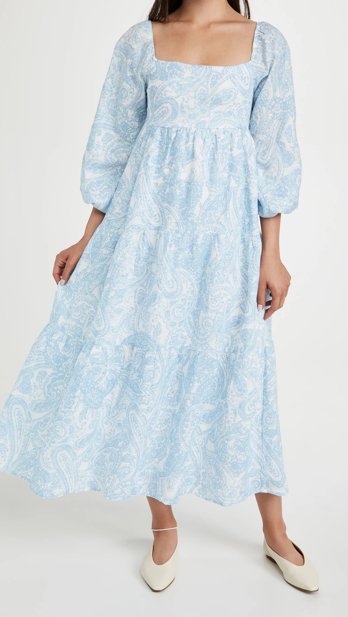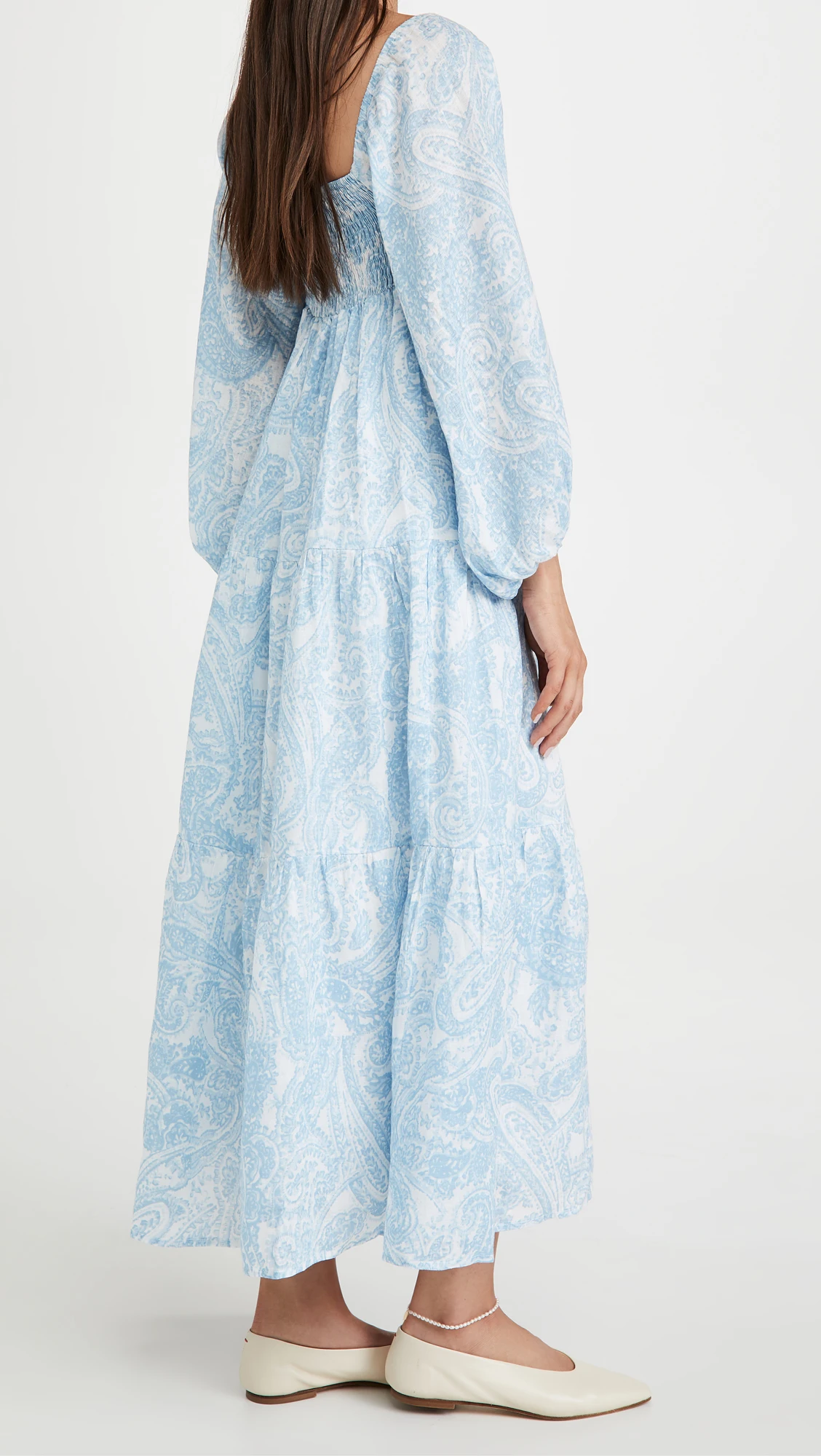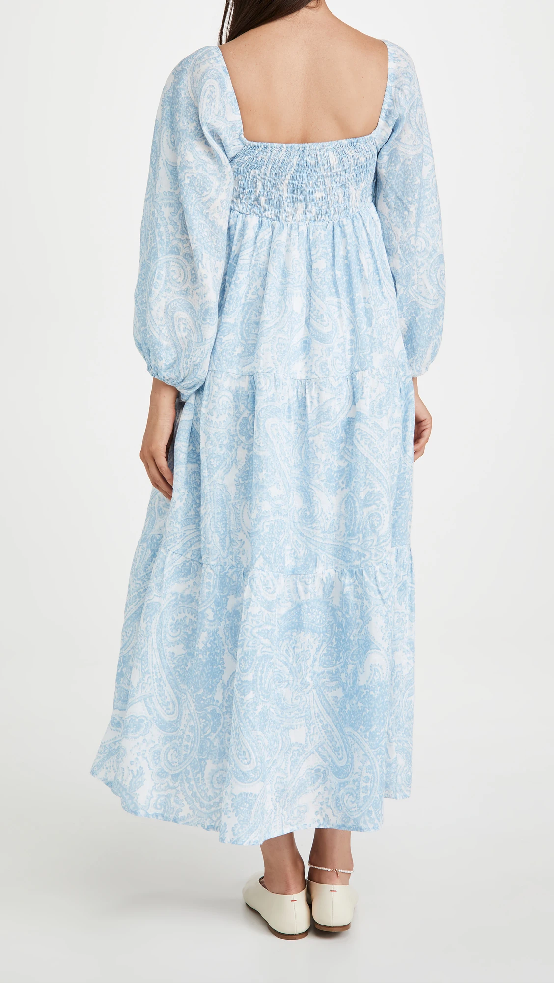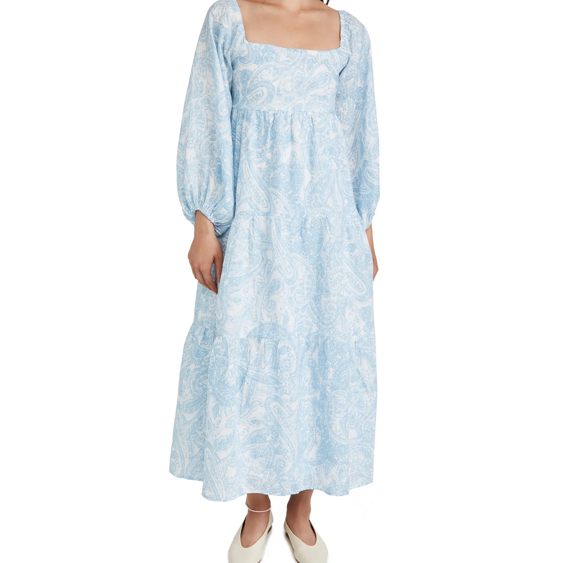 Custom Ladies Elegant Tiered Long Balloon Sleeves Smocked Long Maxi Floral Casual Dresses Women