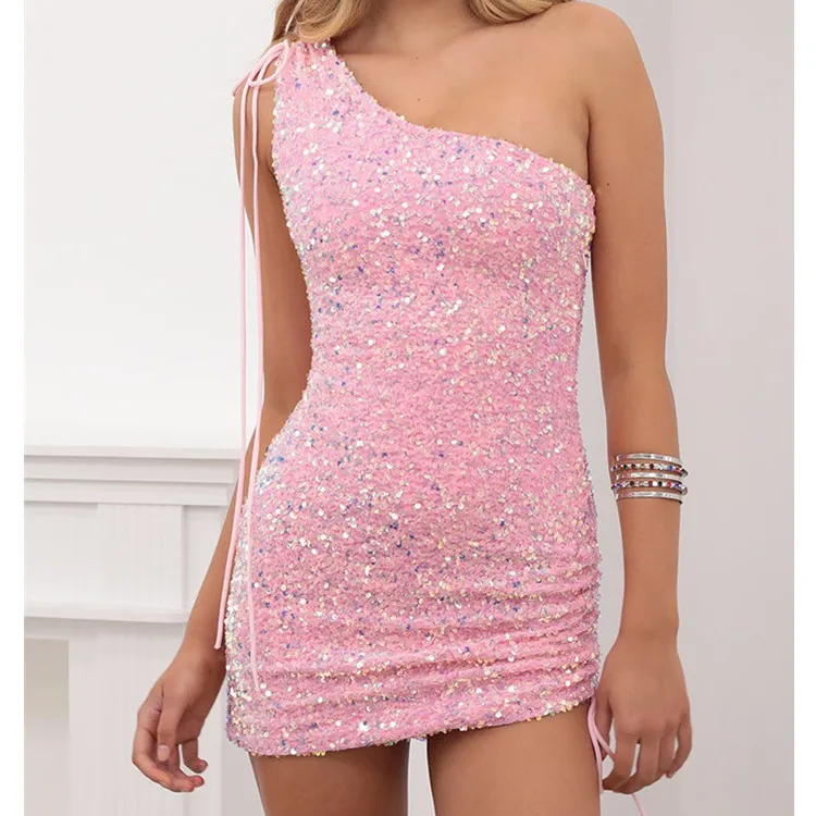 New Summer Homecoming Pink Sequins Casual Dresses Sexy Mini Fashion Ladies Evening Dress