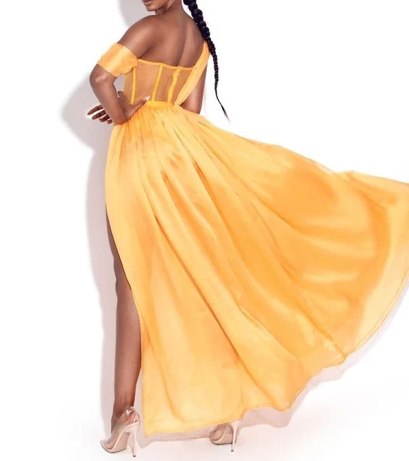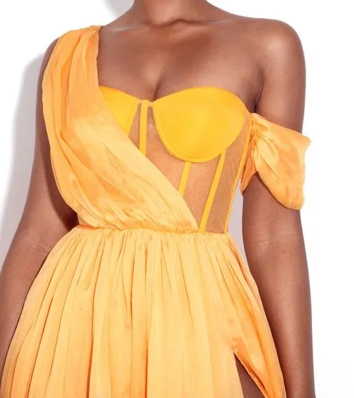 Sexy Women Night Club Orange Silk Pleated Corset High Slit Maxi Dress Long Evening Party Celebrity Dress