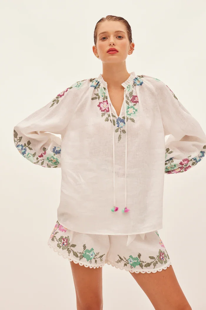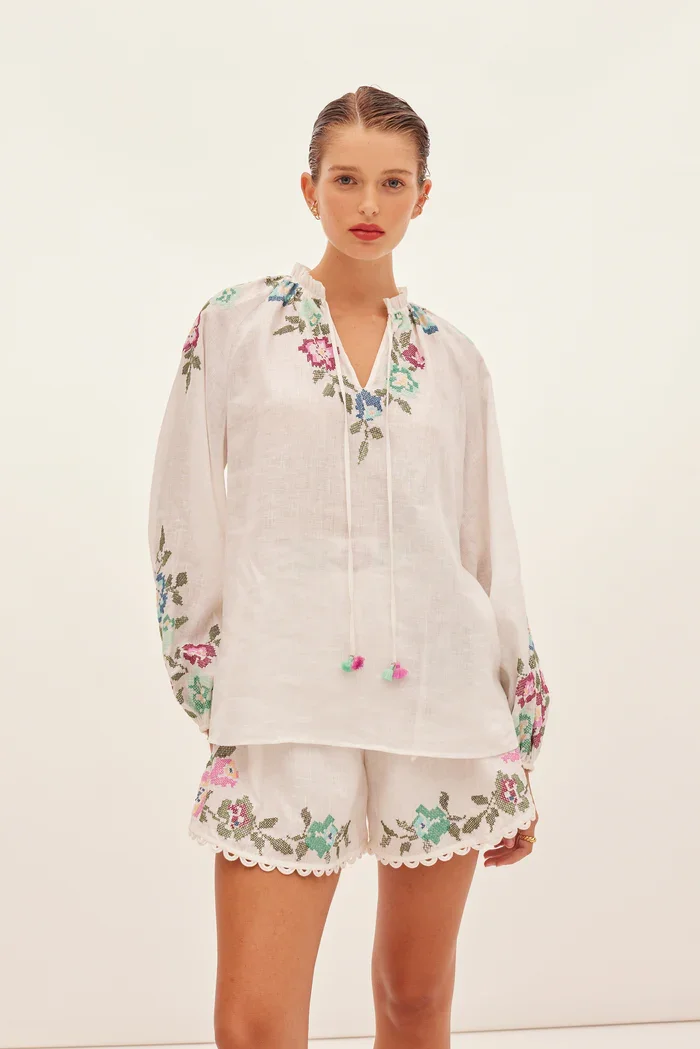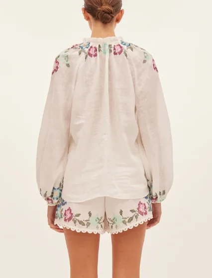 Custom Printed Women's Casual Housewear Linen Rayon Long Sleeve Button-Down Shirt Beachwear Housewear Shirt 2 Piece Set Shorts