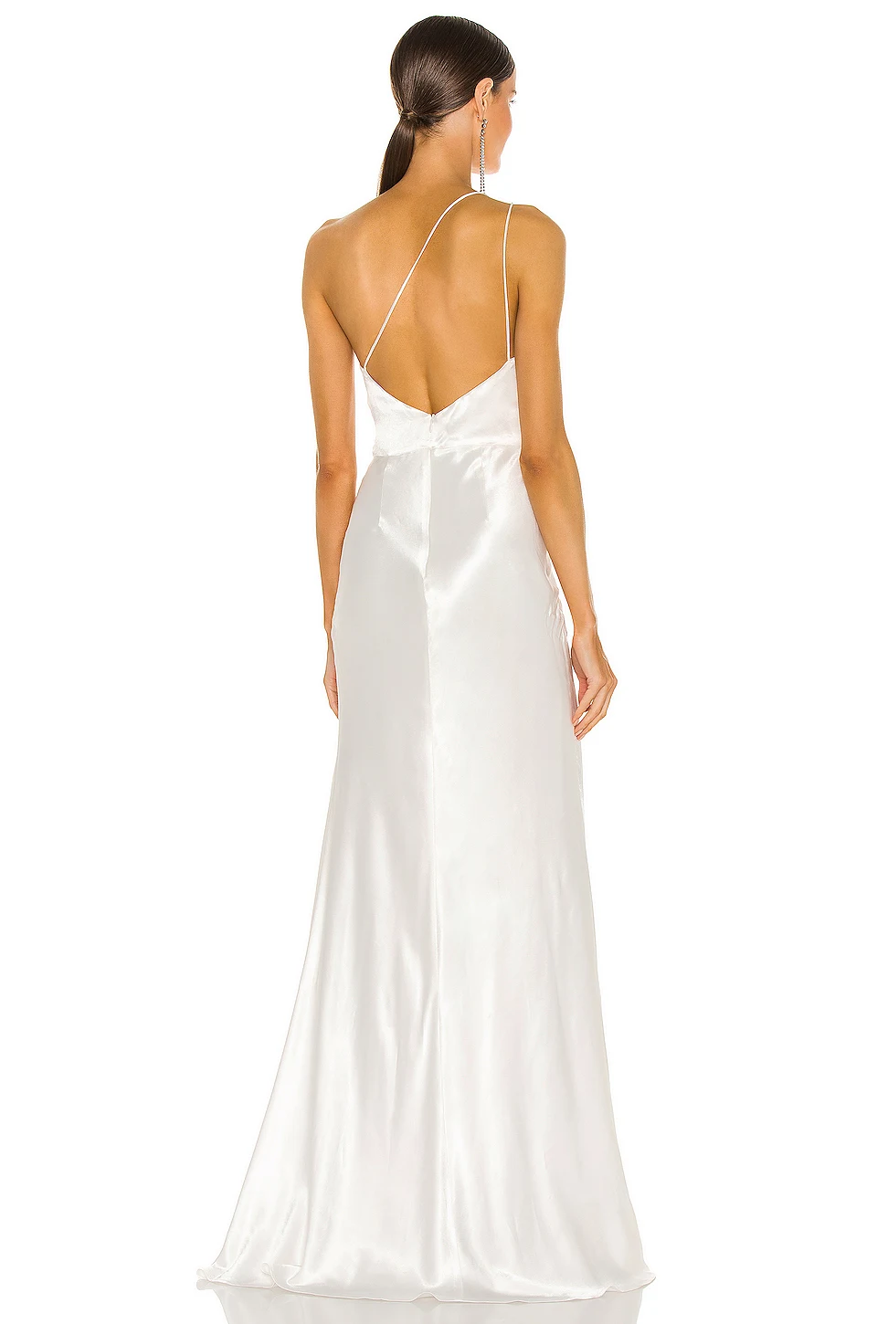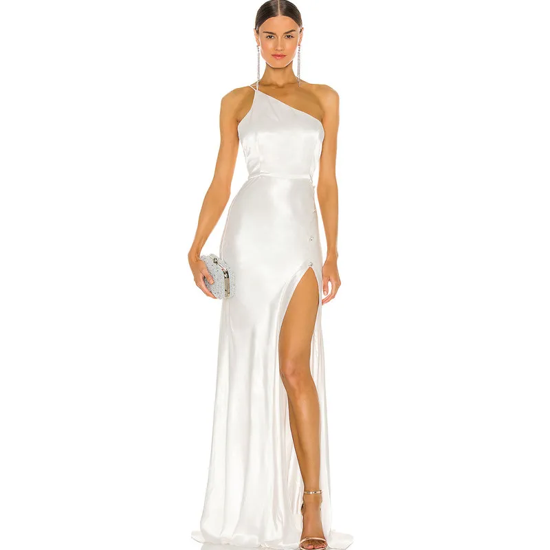 Custom High Quality Slip Satin Dress White Color Satin Maxi Dress With One Shoulder Sexy Prom Dress