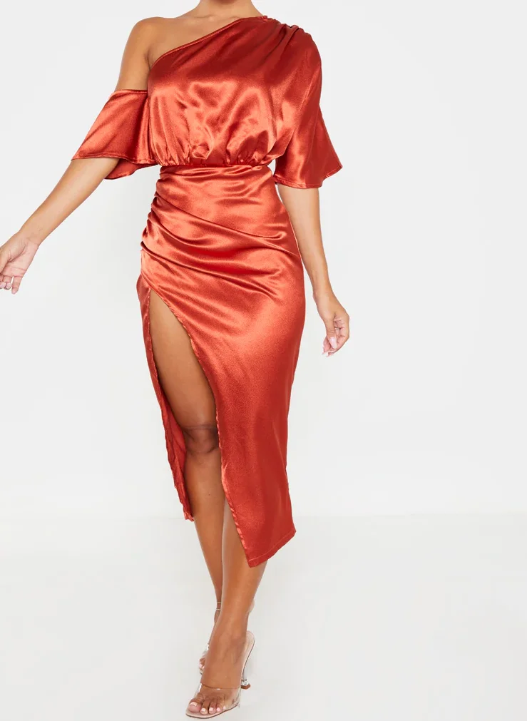 One Shoulder Ruched Design Party Dress Bodycon Dress