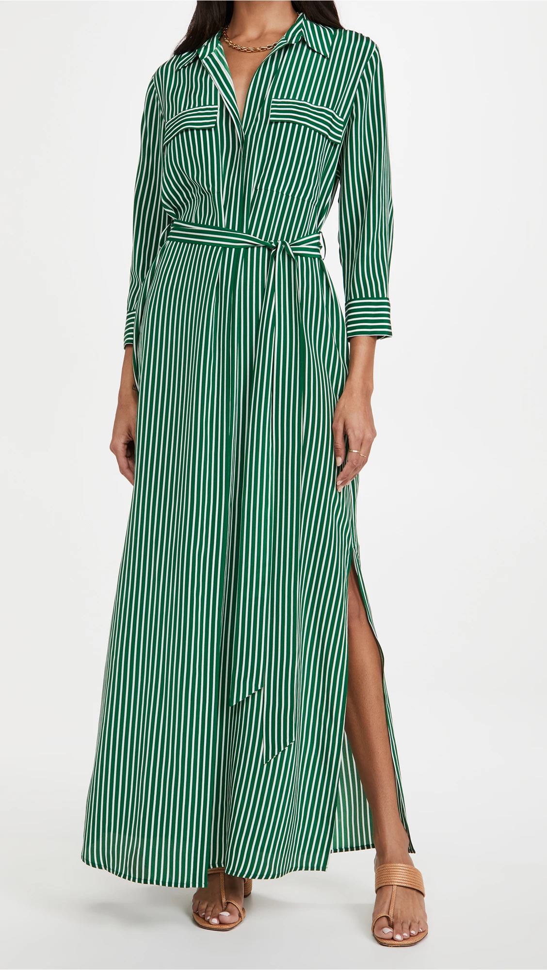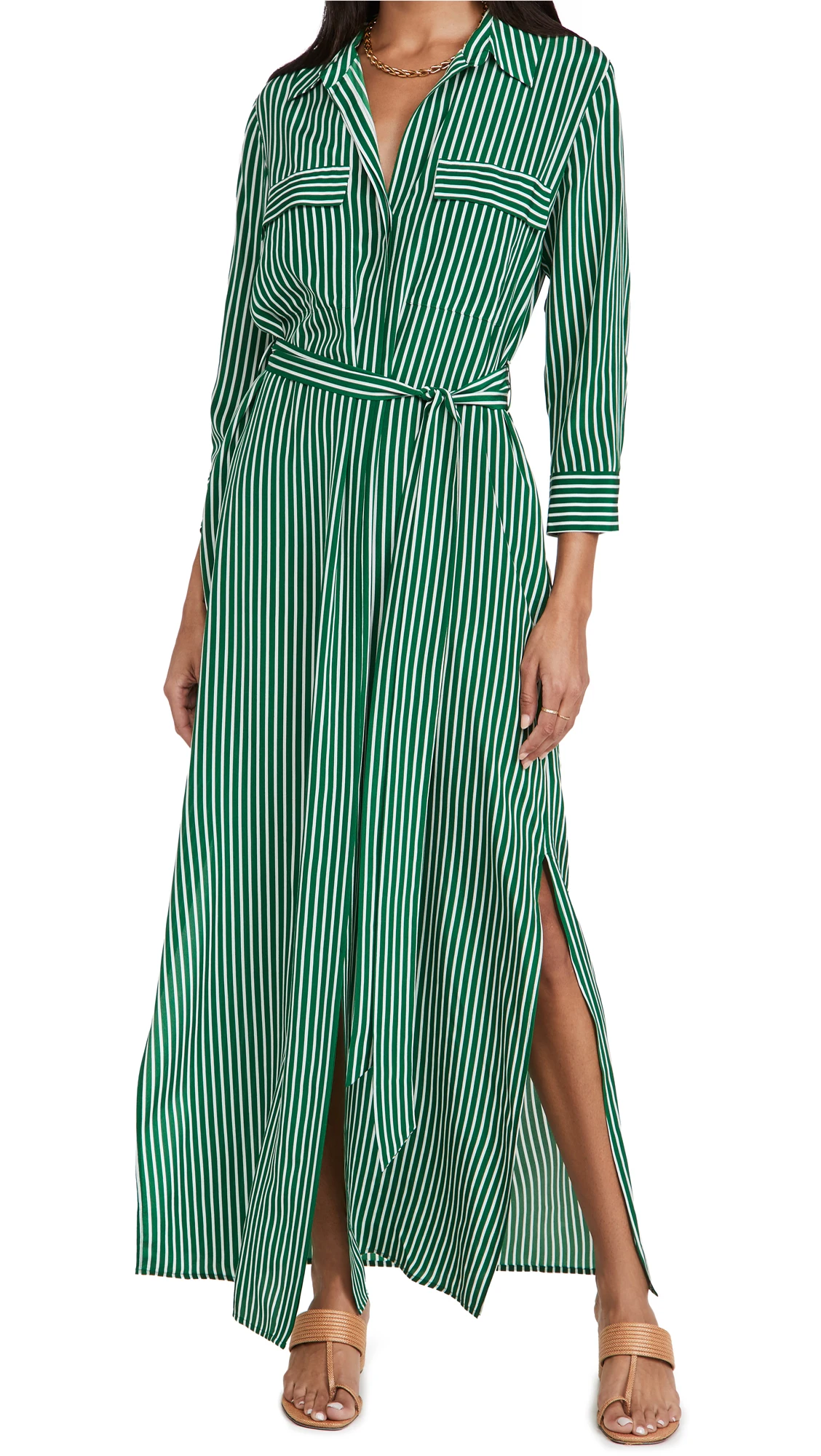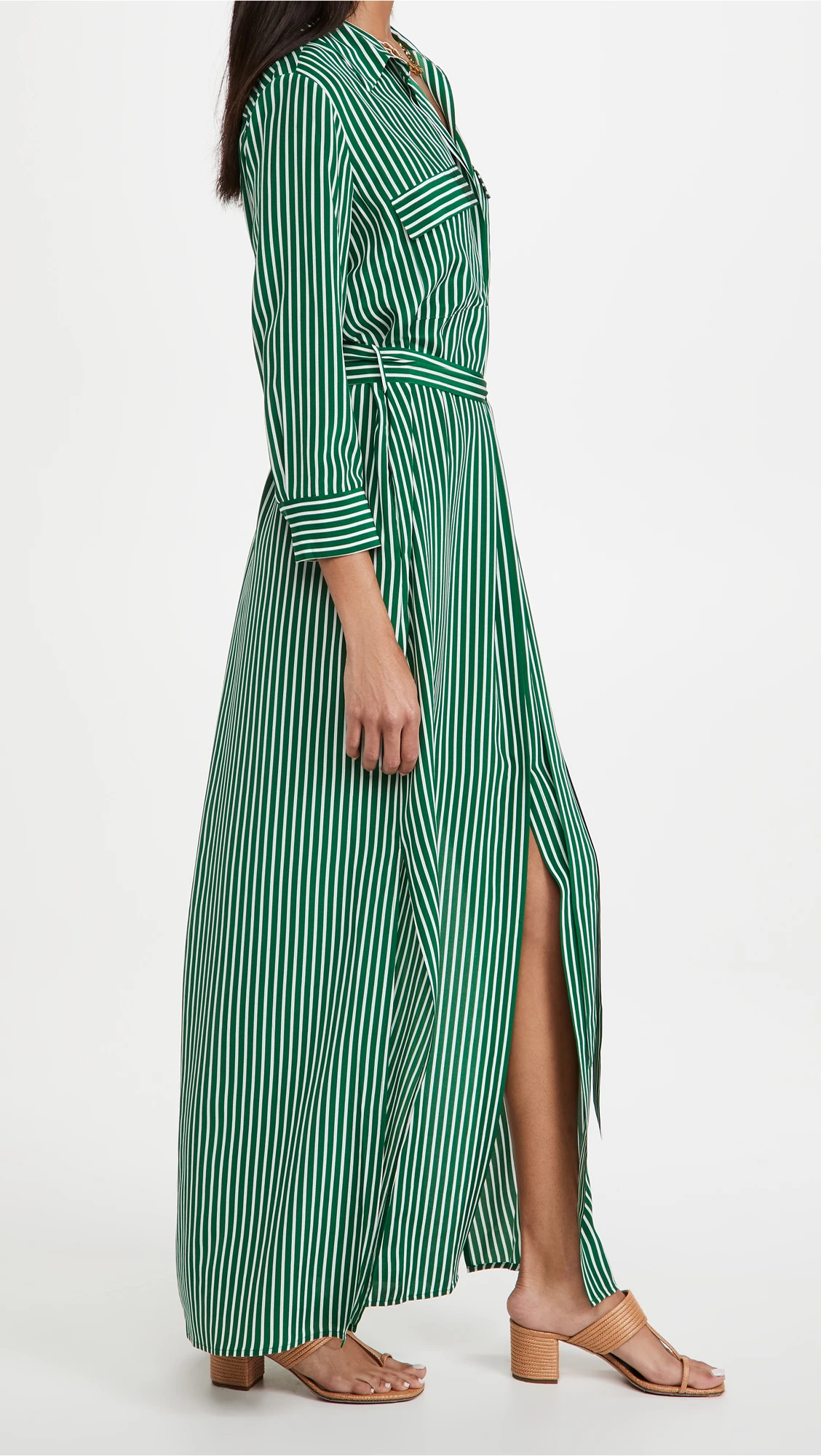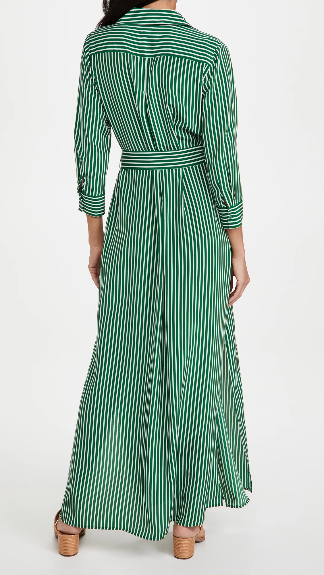 Office Lady v Neck 3/4 Sleeves Self Belt Pleated Split Stripe Print Long Maxi Shirt Dresses Women