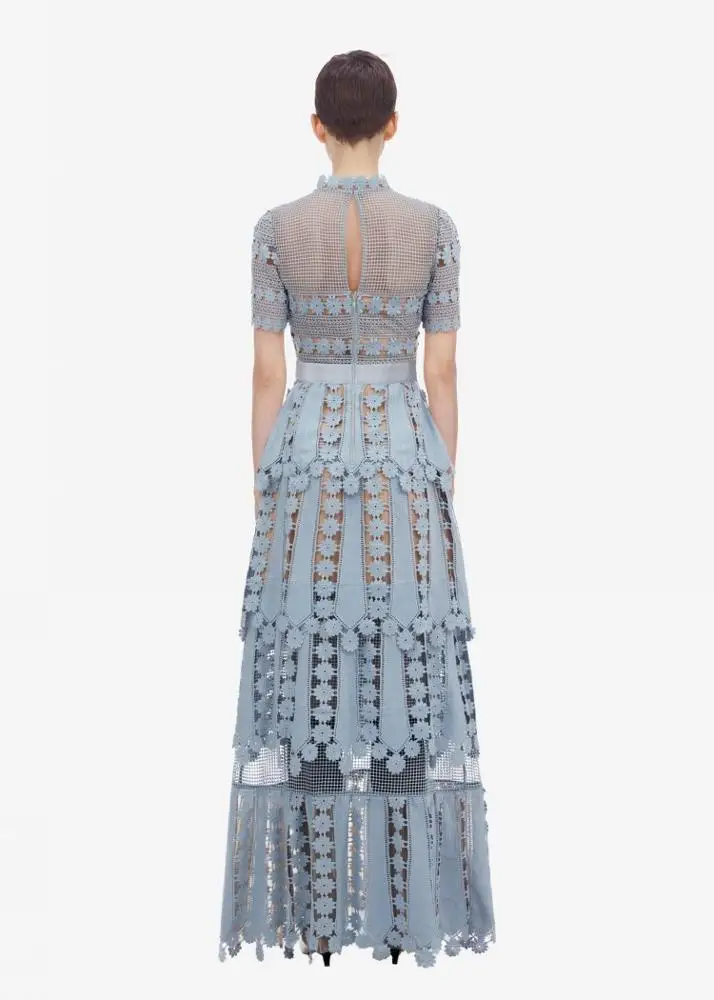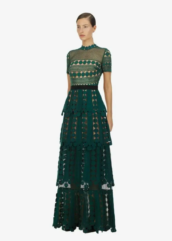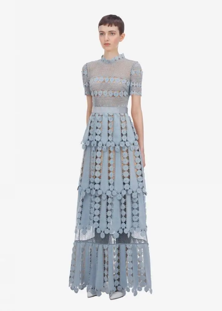 Plus Size Autumn New Design Ladies Woman Green Blue Long Lace Dress Manufacturers Factory Supplier