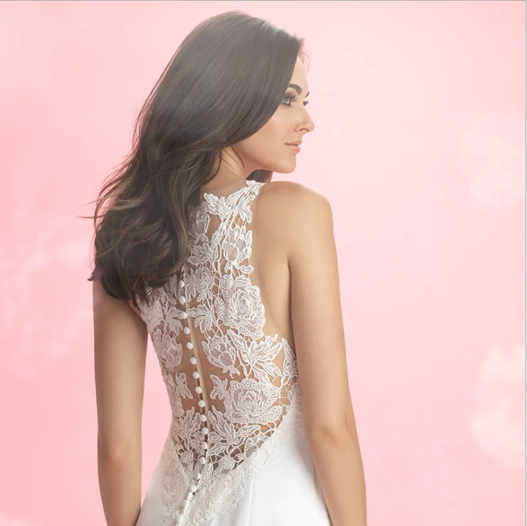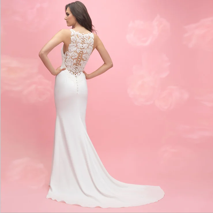 Solid White Lace Back Summer Sexy Wedding Gown Wedding Dress With Trail