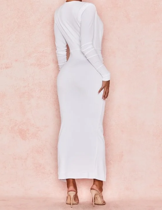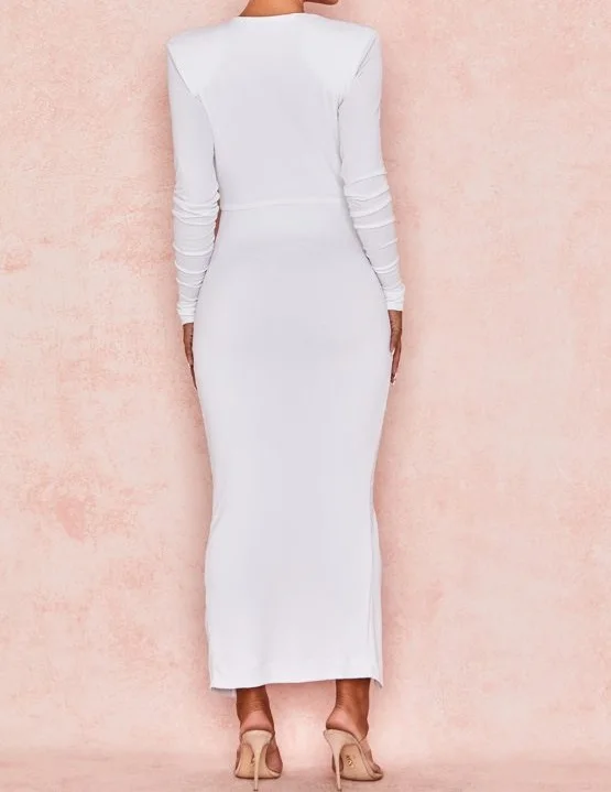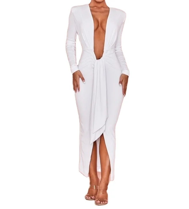 Elegant Bodycon Sexy White Dress Juliette White Jersey Plunge Neck Midi Dress v Neck Party Dresses Lady