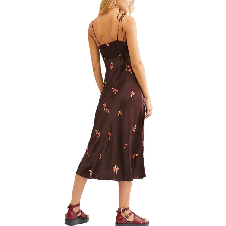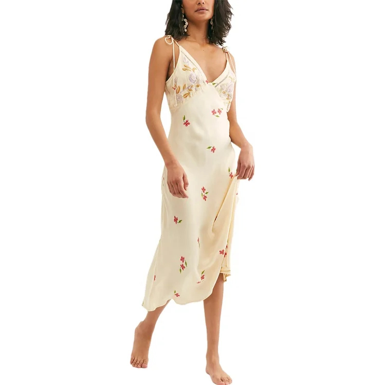 2026 Custom Fashion Lady Summer Wholesale tank Top Long Maxi Loose One Piece Clothes Women Sexy V Neck Floral Print Satin Dress