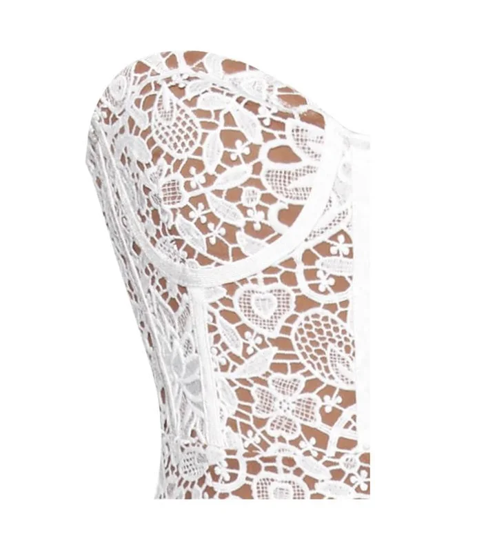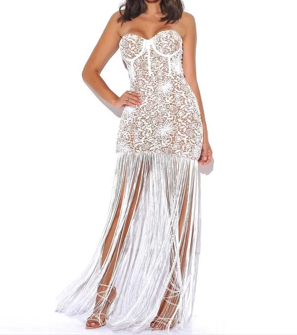 Ladies Tassels White Lace Long Fringed Strapless Dress Celebrity Evening Nightclub Long Bandage Party Dress
