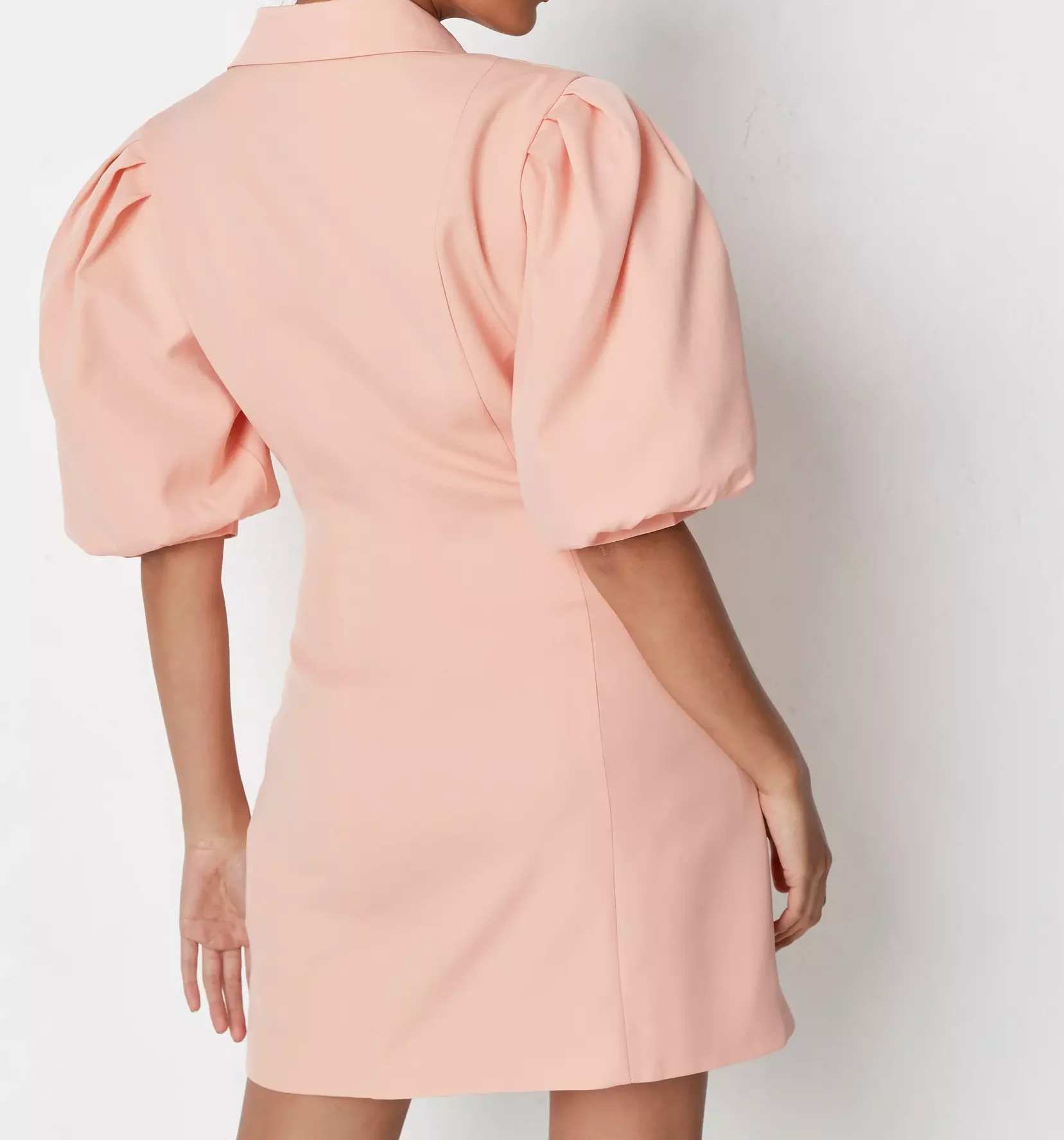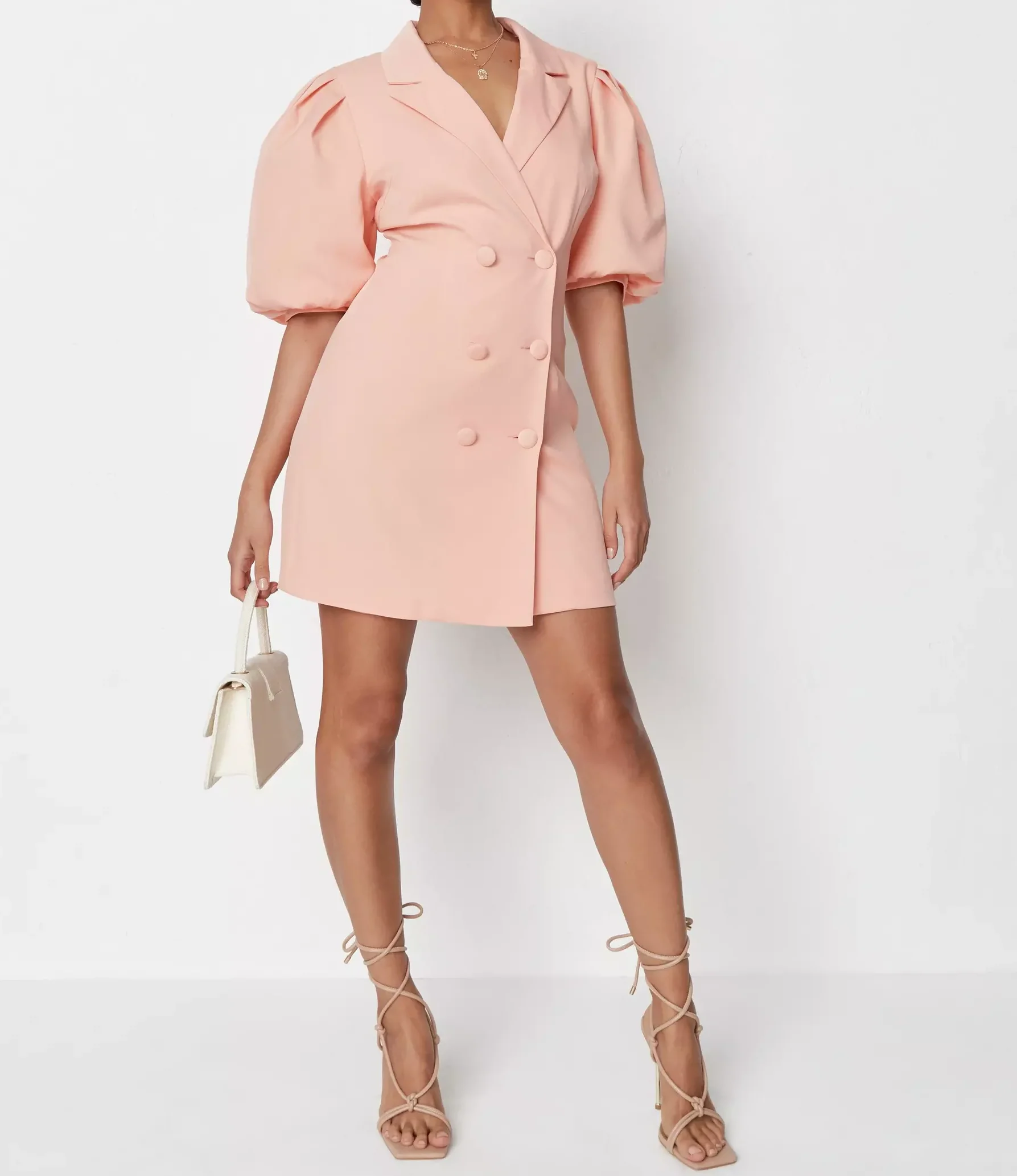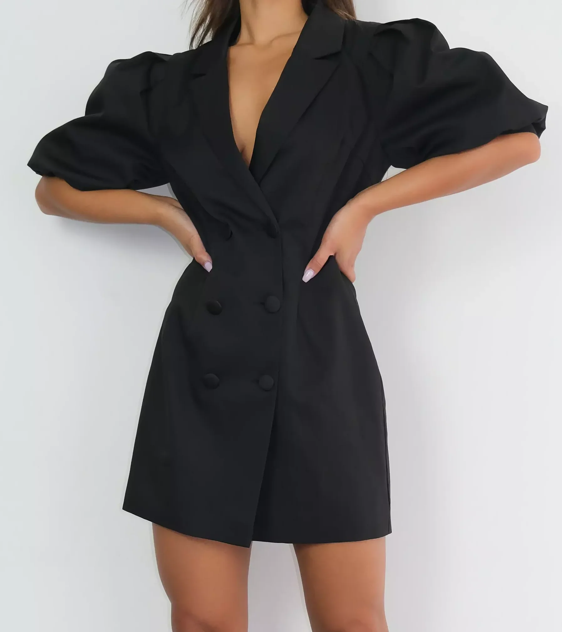 Fashion Double Breasted blazer Dress Puff Sleeve blazer Mini Dress Office Ladies Casual Wearing