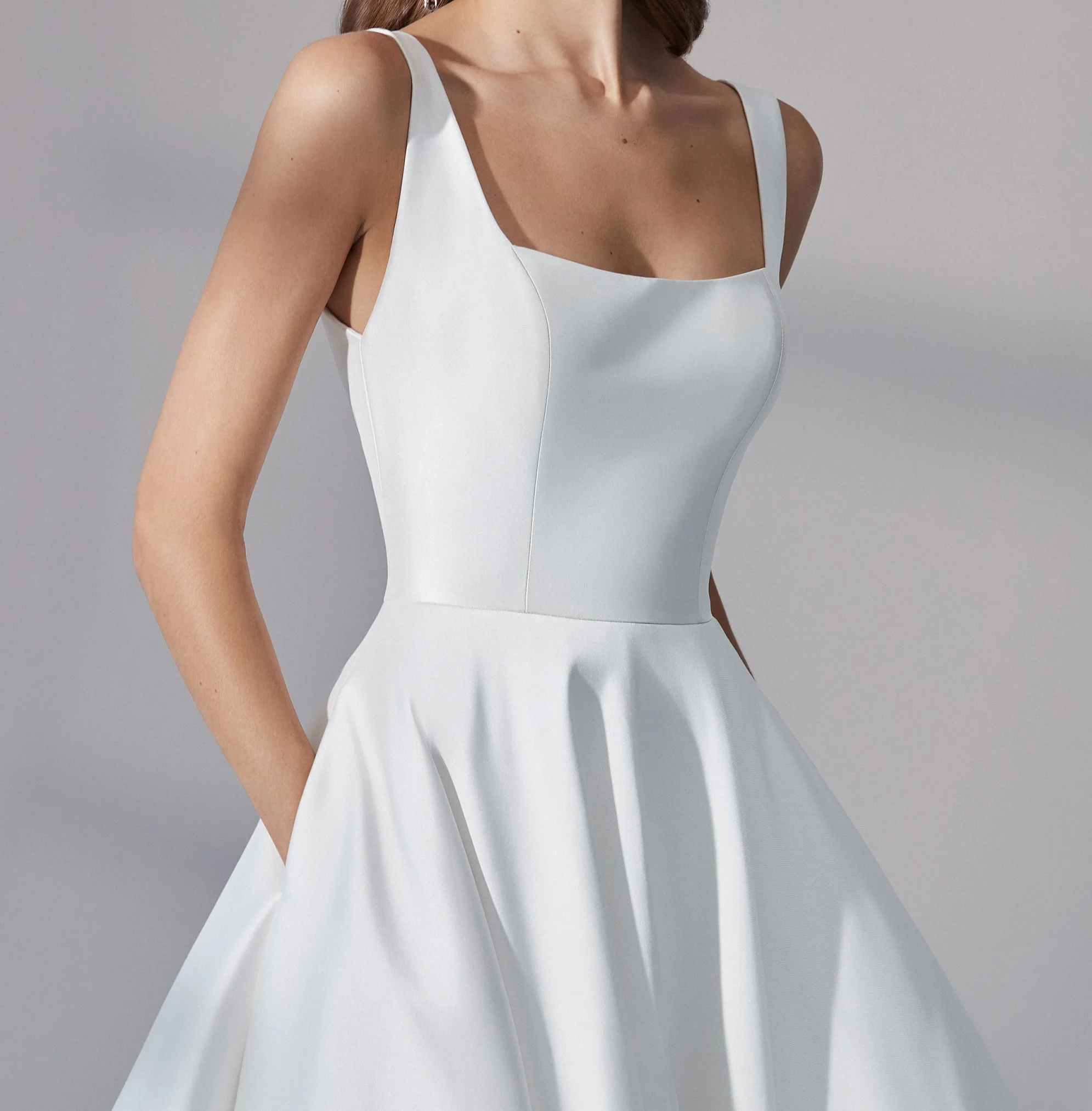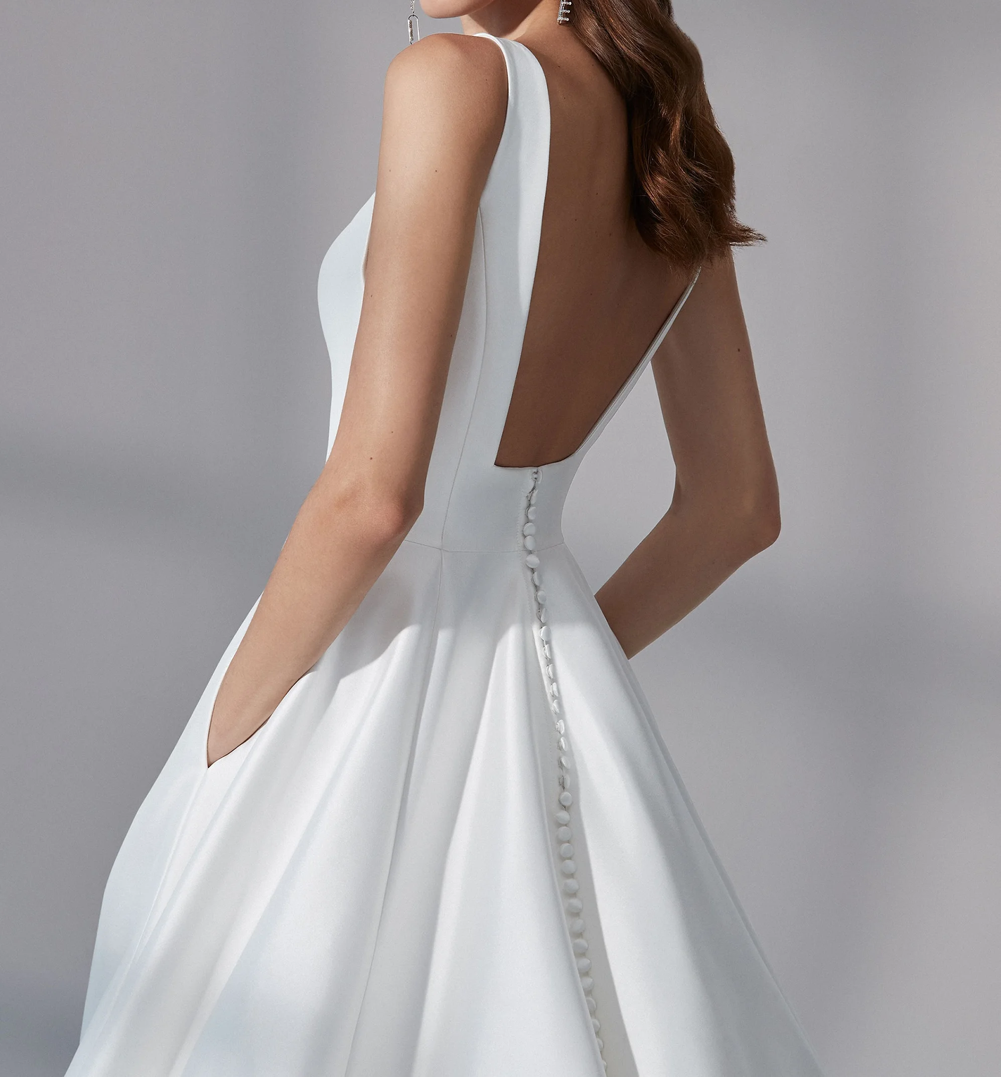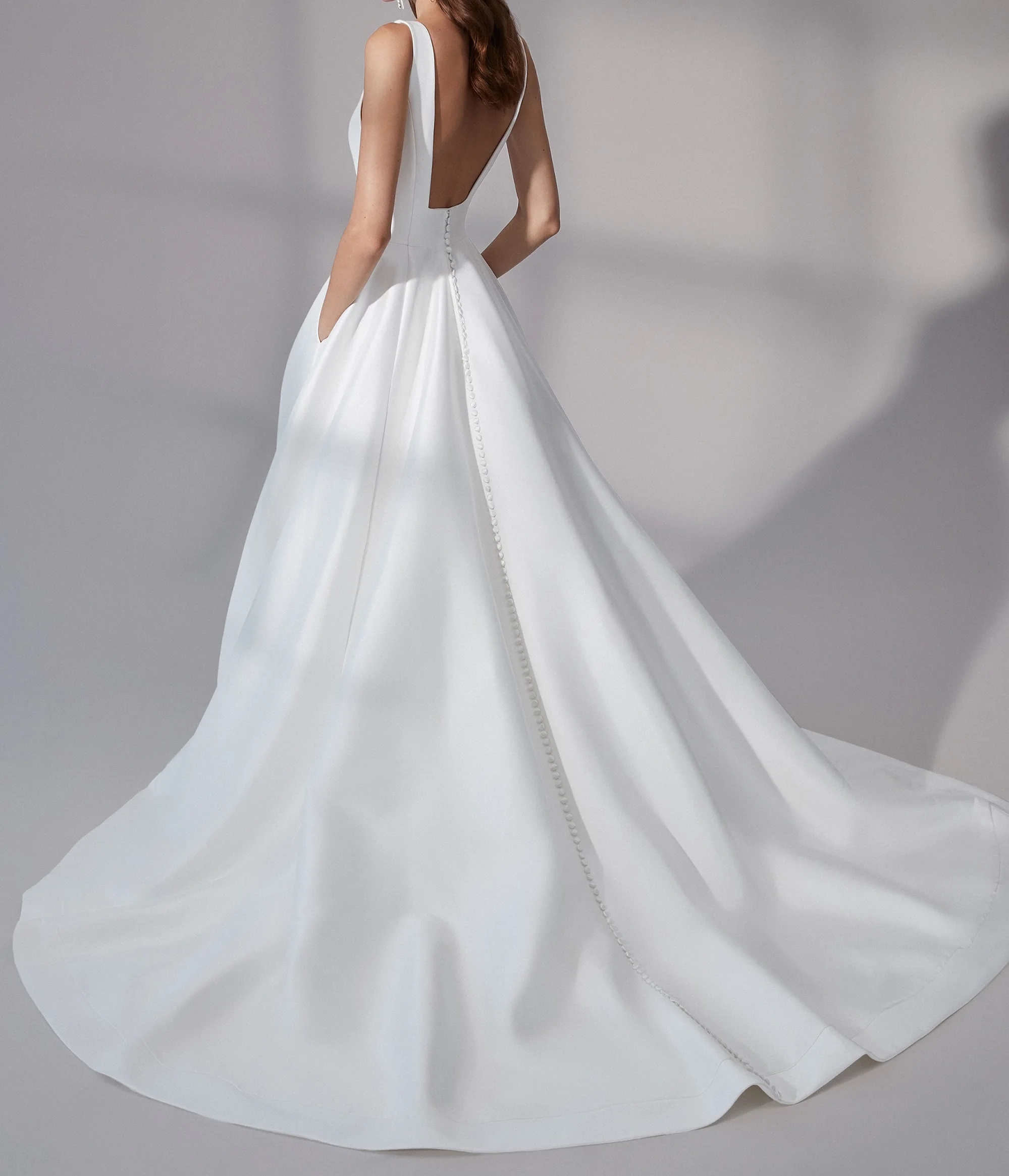 Simple Bridal Wedding Dress Satin Stretch Mikado Ball Gown With Square Neckline Beach Bridal Gowns With Detachable Tail