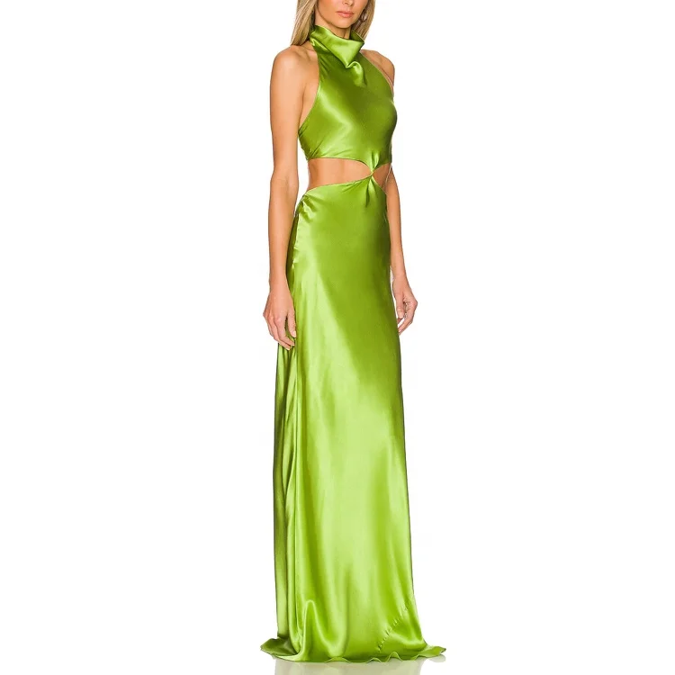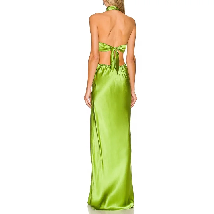 Custom Lady High Quality Lucky Label logo New Arrivals Brand 2025 Custom Summer Satin Halter Neck Cut Out Maxi Women Long Dress