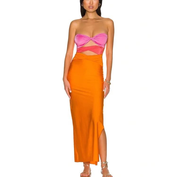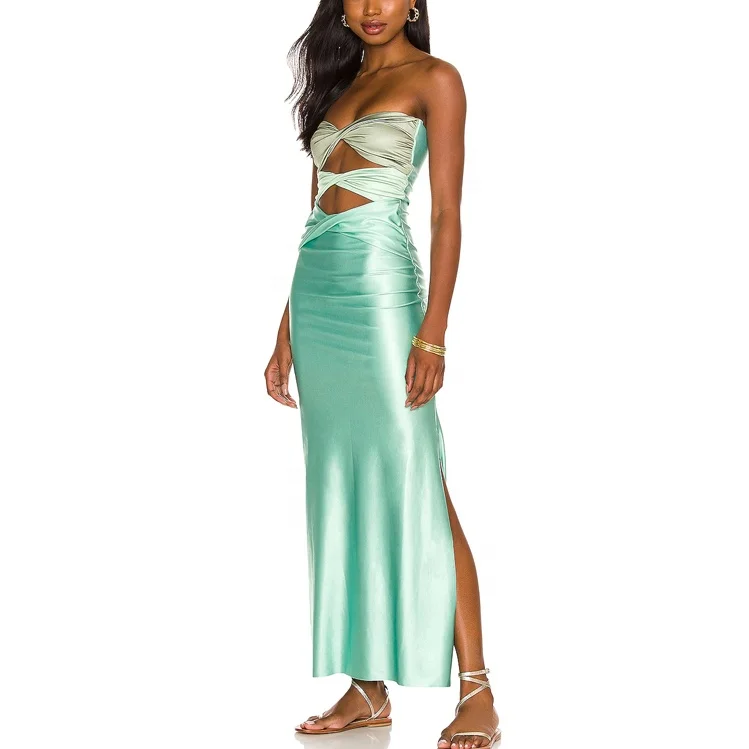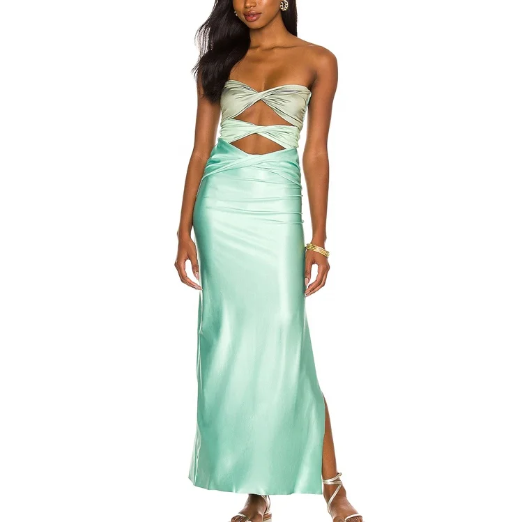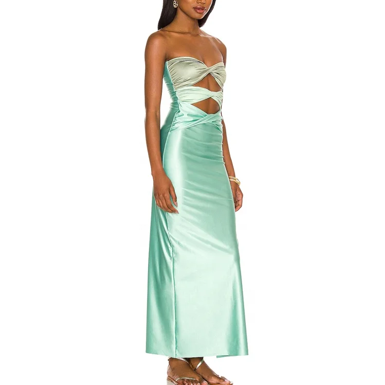 Custom Latest Designer Brand New Arrivals High Quality Fashion Female Summer Lady Satin Cut Out Long Women Maxi Dress 2026
